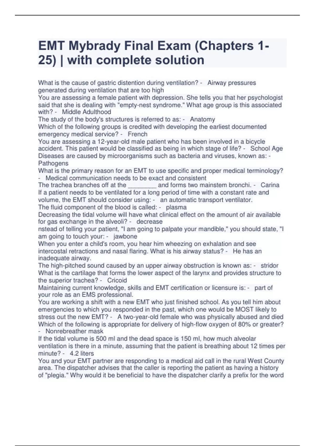 EMT Mybrady Final Exam (Chapters 1-25) | with complete solution