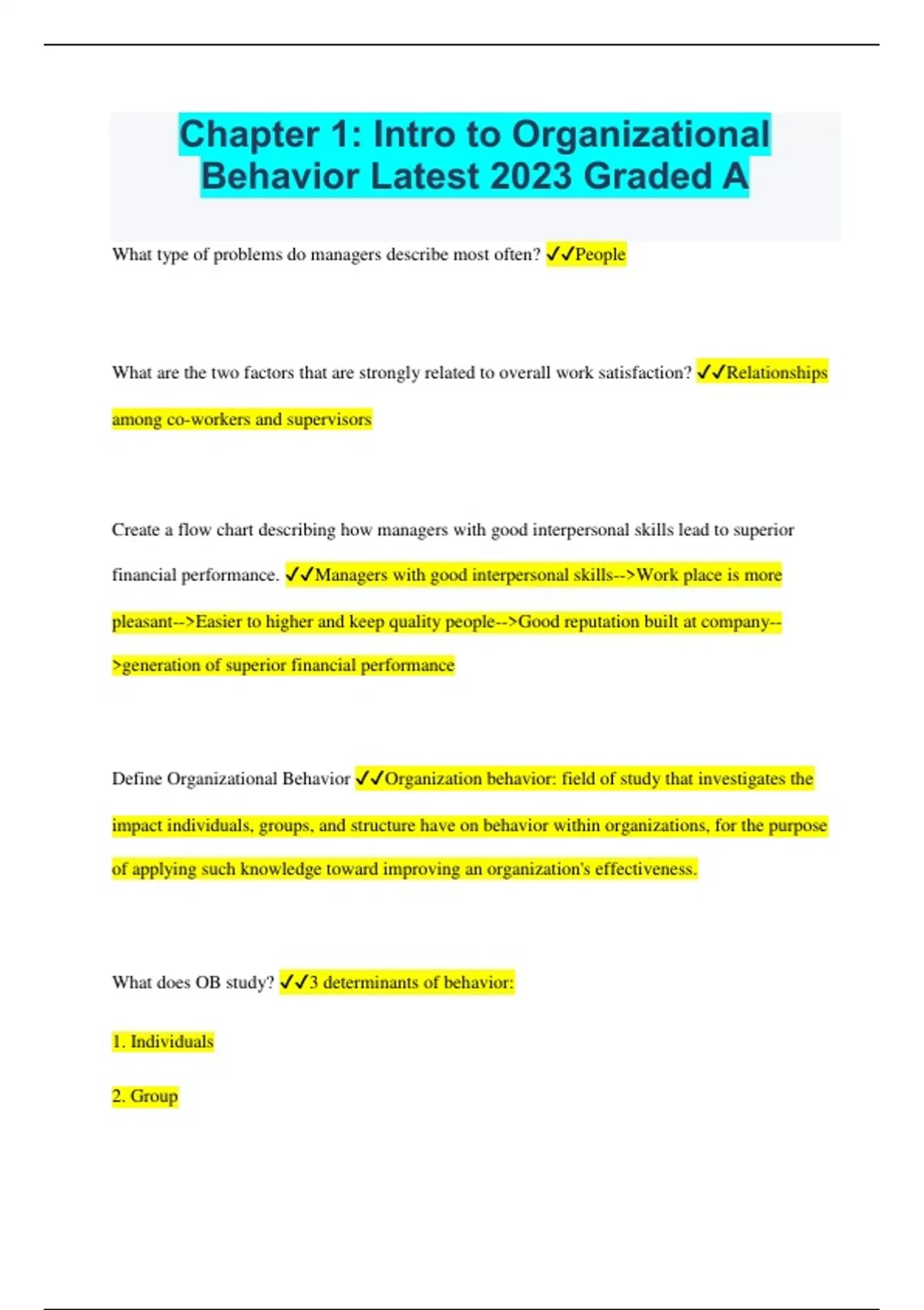 Chapter 1: Intro to Organizational Behavior Latest 2023 Graded A