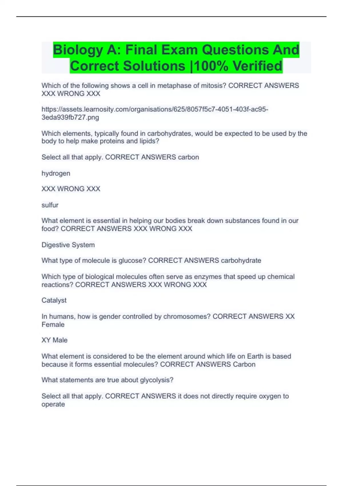 Biology A: Final Exam Questions And Correct Solutions |100% Verified