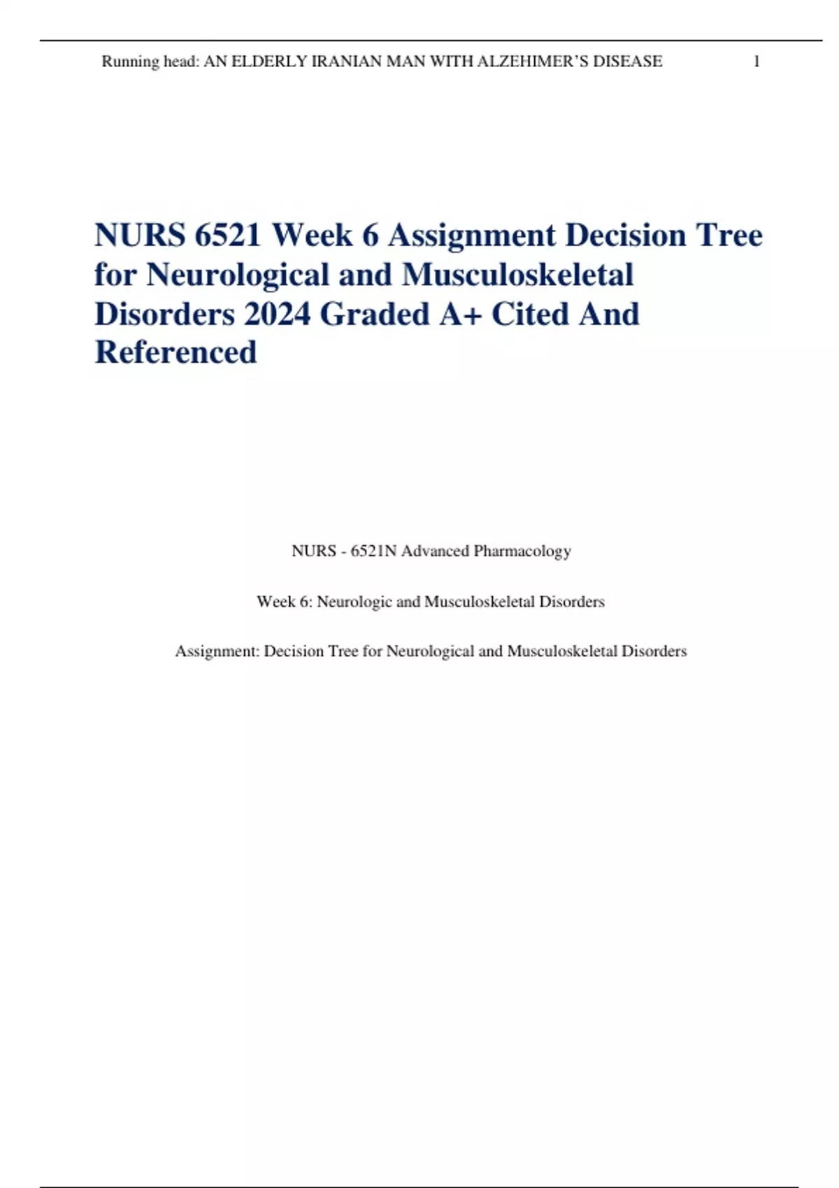 NURS 6521 Week 6 Assignment Decision Tree for Neurological and Musculoskeletal Disorders 2024 Graded A+ Cited And Referenced