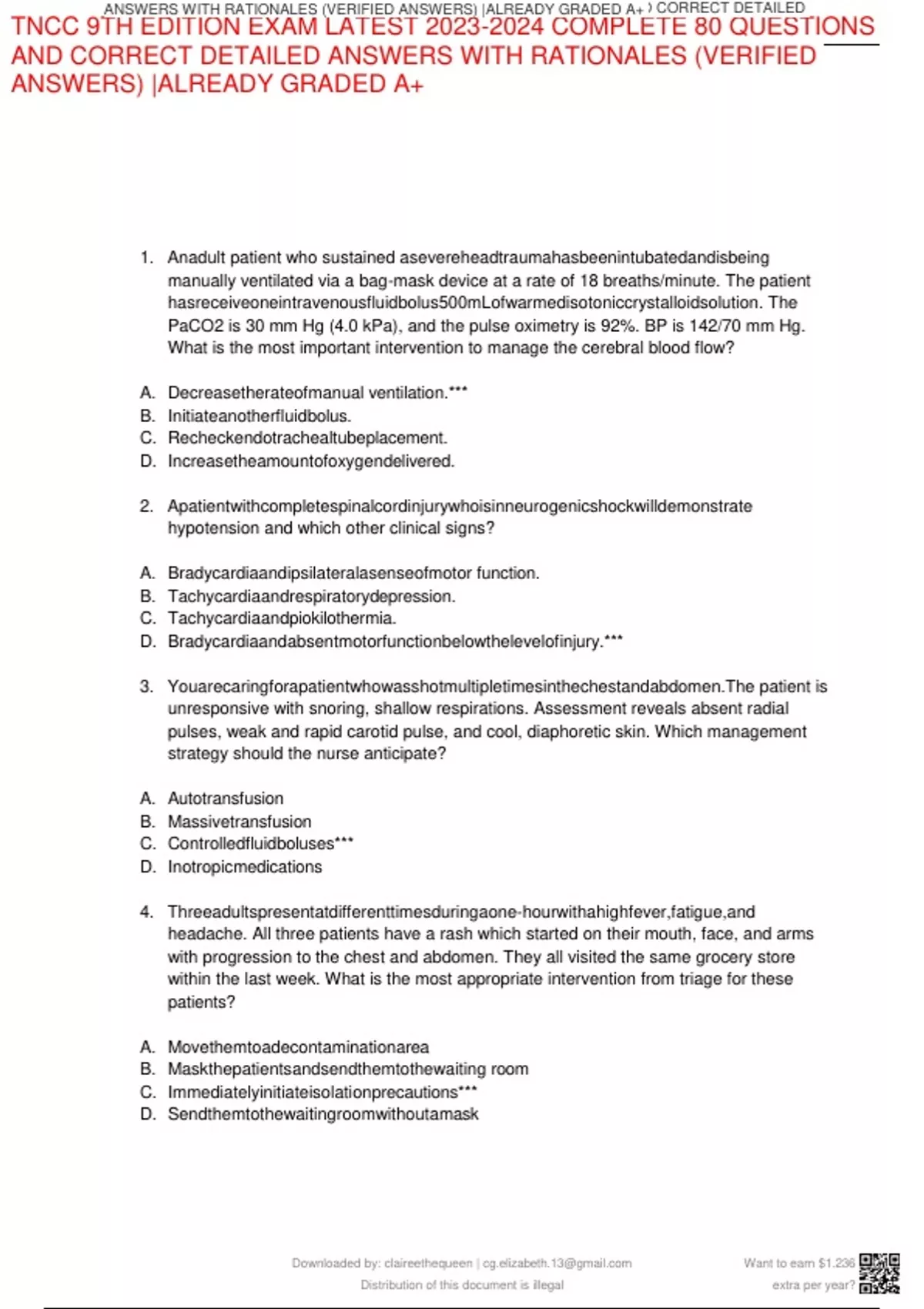 TNCC 9TH EDITION EXAM LATEST 2023-2024 COMPLETE 80 QUESTIONS
