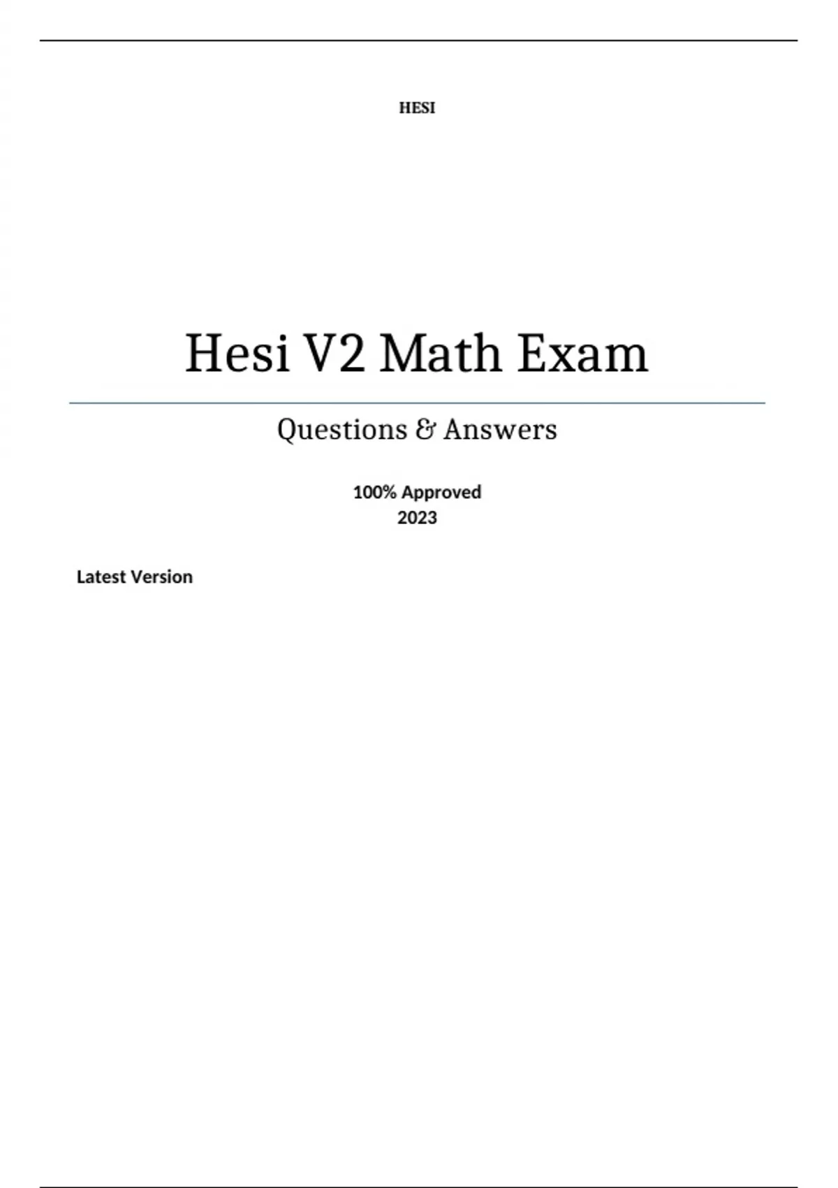 HESI V2 Math Exam | Questions & Answers (Graded 97%) |2023 Latest