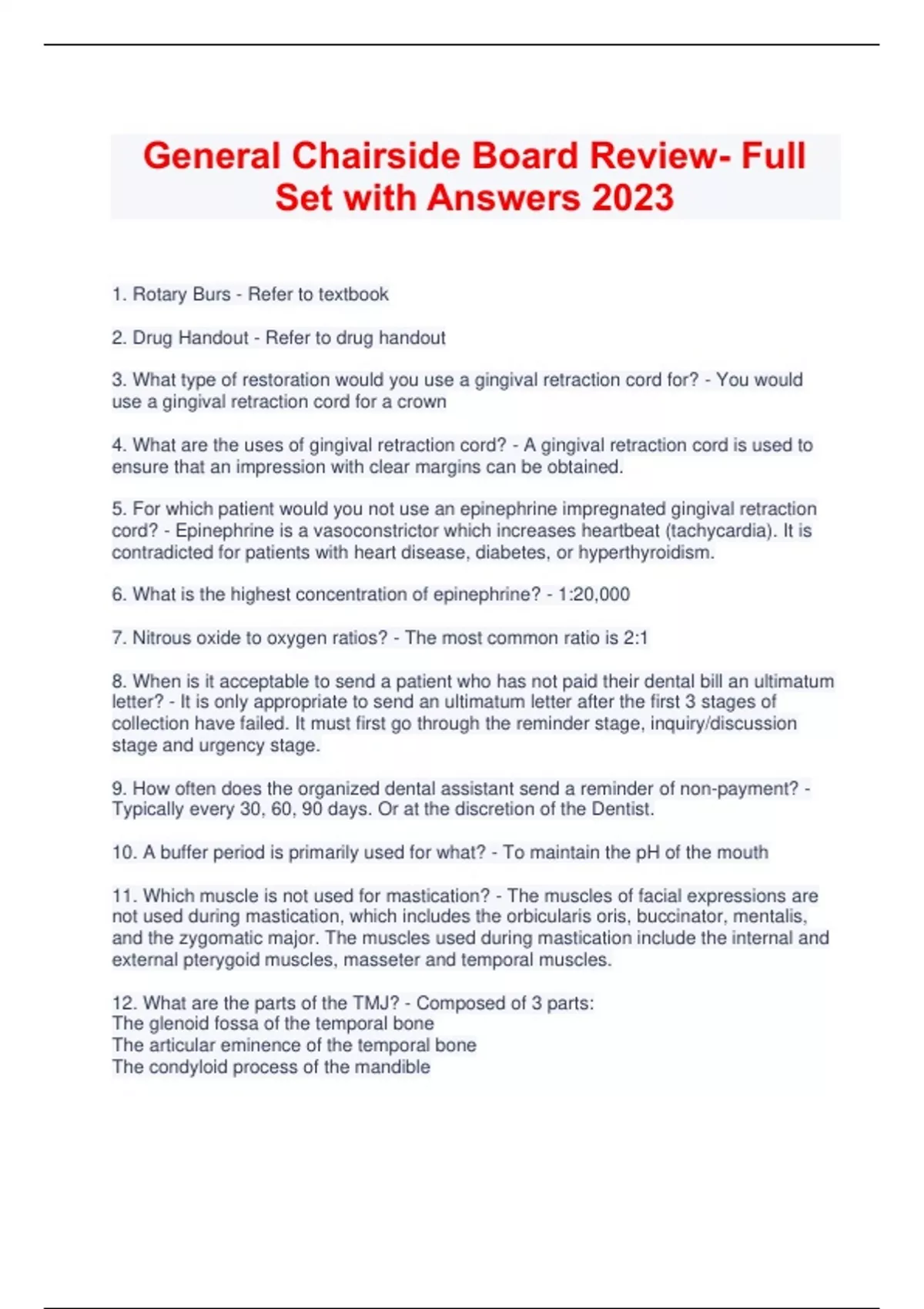 General Chairside Board Review- Full Set with Answers 2023