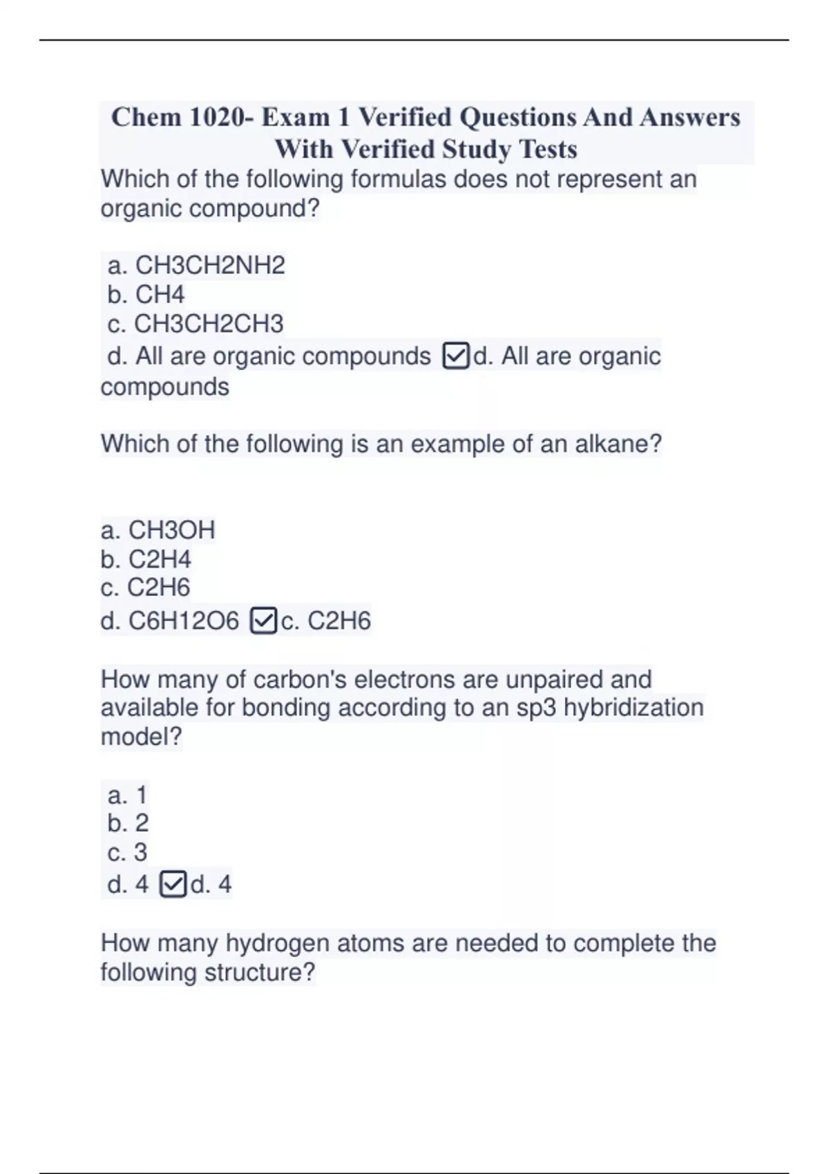 Chem 1020- Exam 1 Verified Questions And Answers With Verified Study Tests