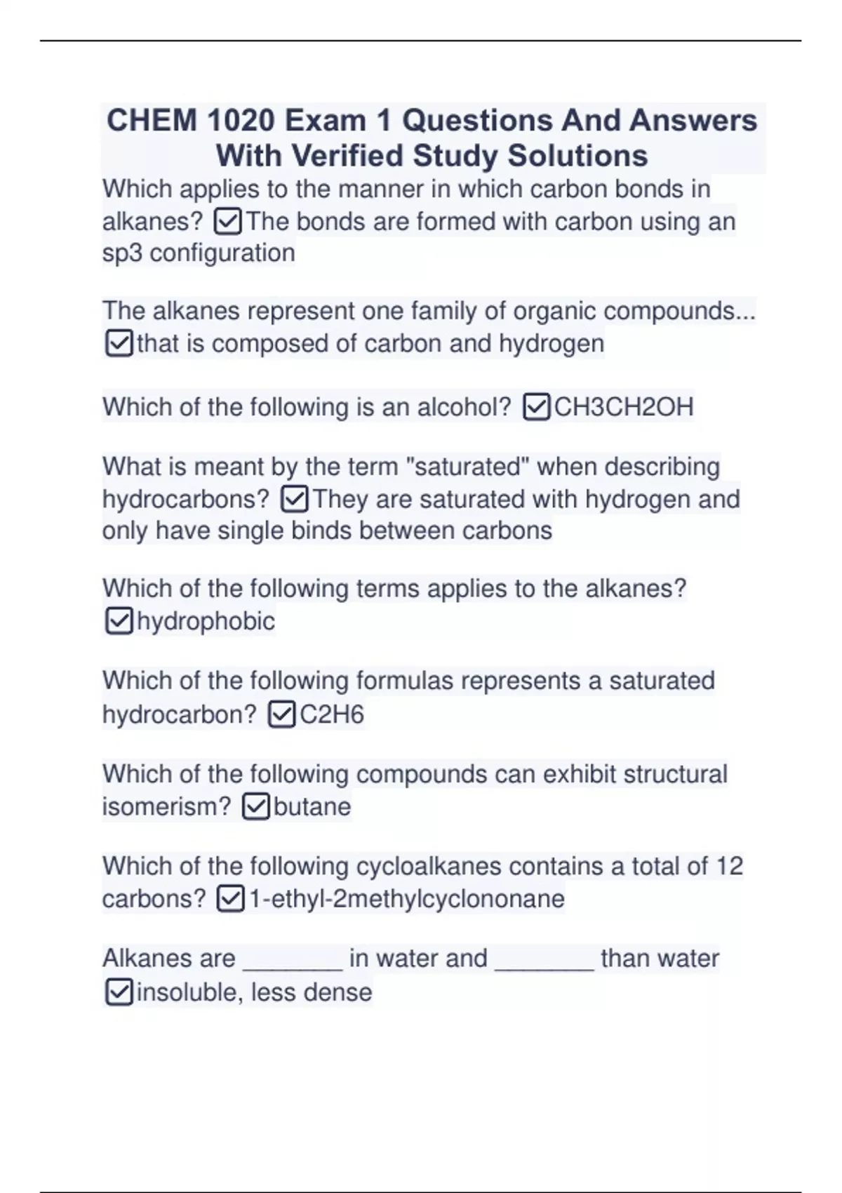 CHEM 1020 Exam 1 Questions And Answers With Verified Study Solutions