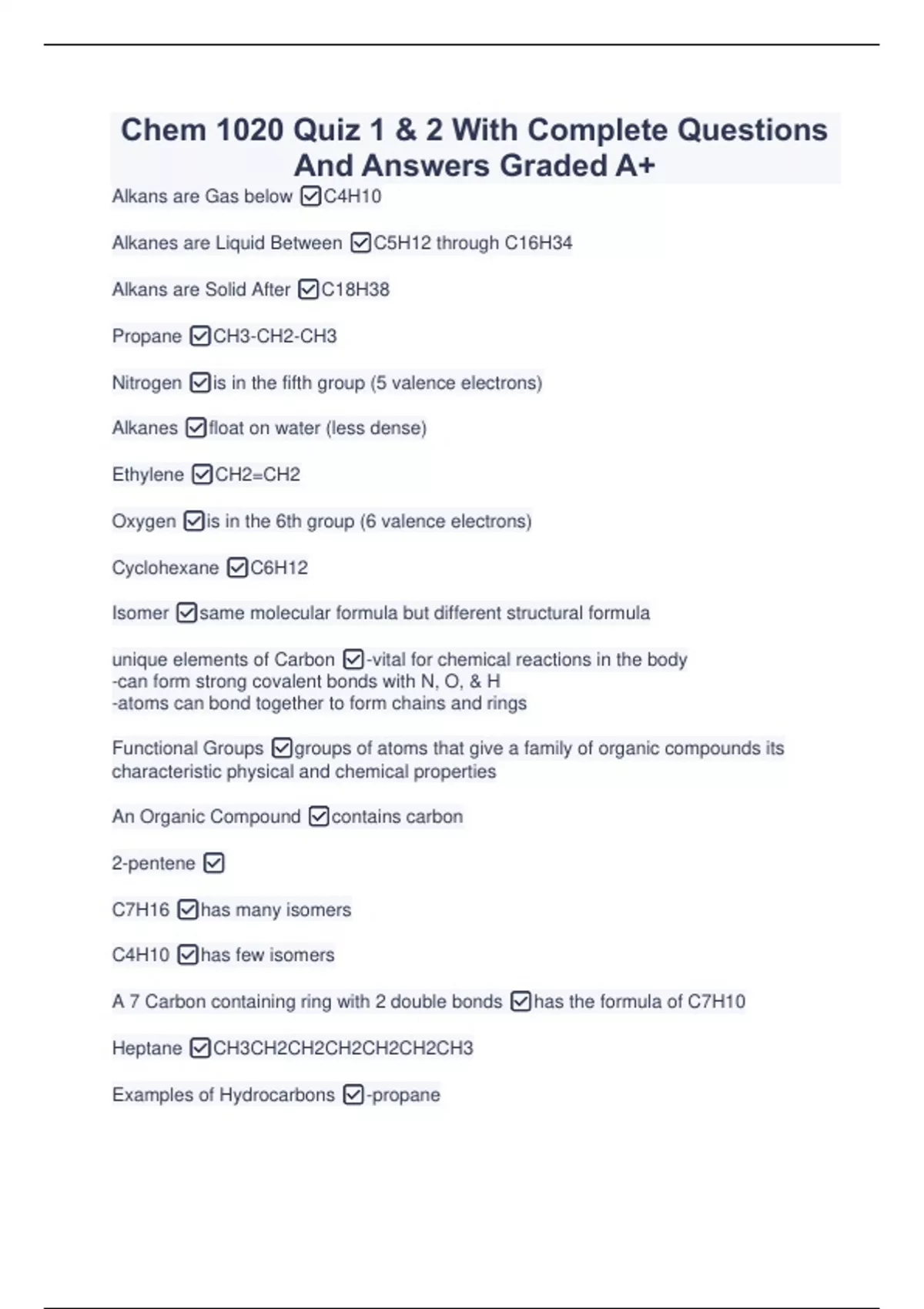 Chem 1020 Quiz 1 & 2 With Complete Questions And Answers Graded A+