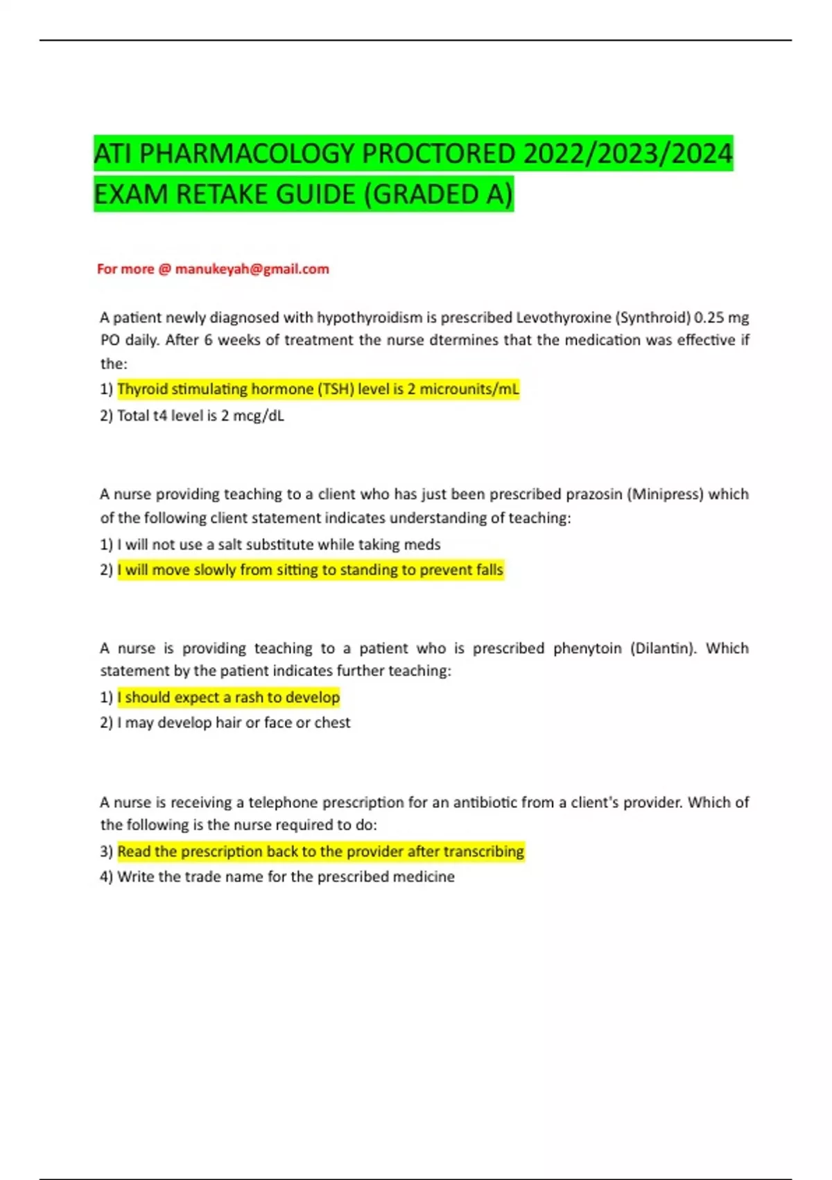 ATI Pharmacology Proctored 2019/2020 Exam Retake