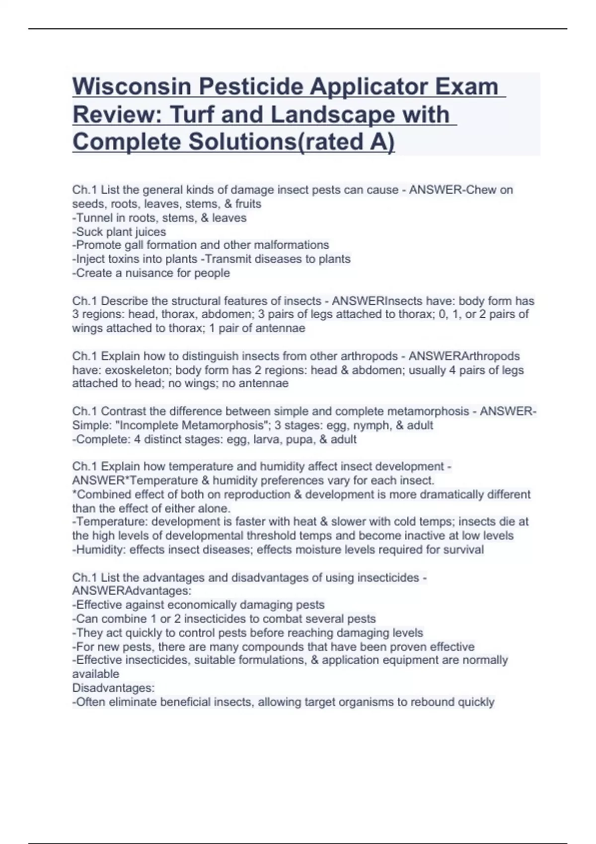 Wisconsin Pesticide Applicator Exam Review: Turf and Landscape with Complete Solutions(rated A)