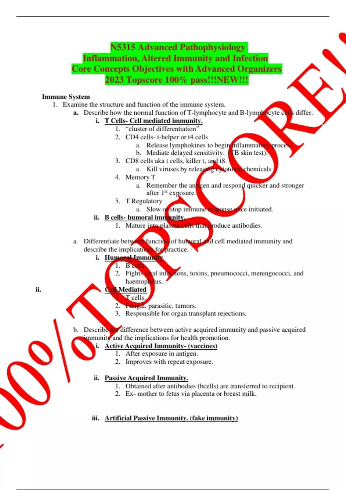 N5315 Advanced Pathophysiology Inflammation, Altered Immunity and Infection Core Concepts Objectives with Advanced Organizers 2023 Topscore 100% pass!!!NEW!!!
