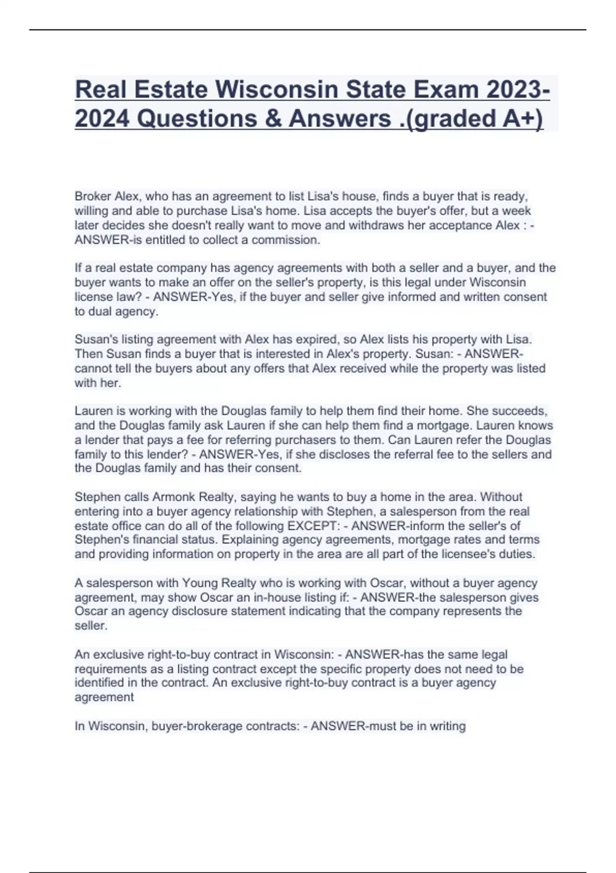 Real Estate Wisconsin State Exam Questions & Answers .(graded A+)
