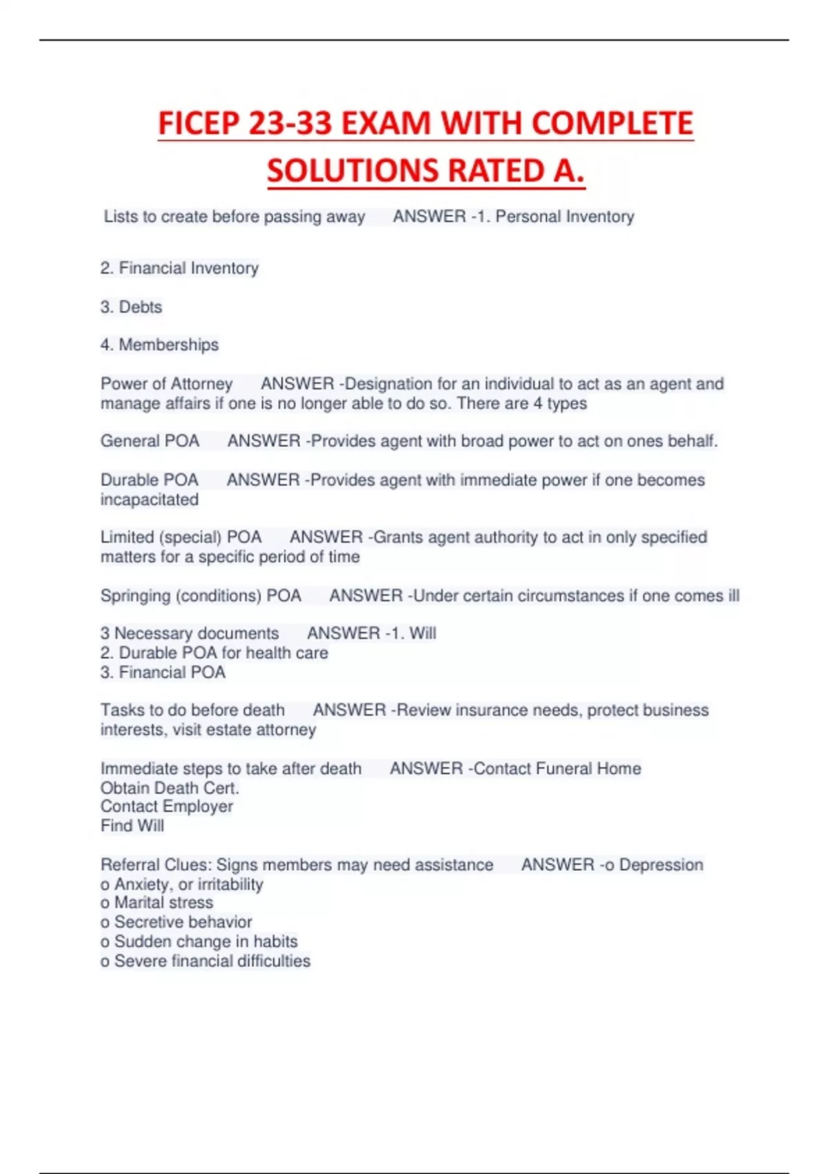 FICEP 23-33 EXAM WITH COMPLETE SOLUTIONS RATED A