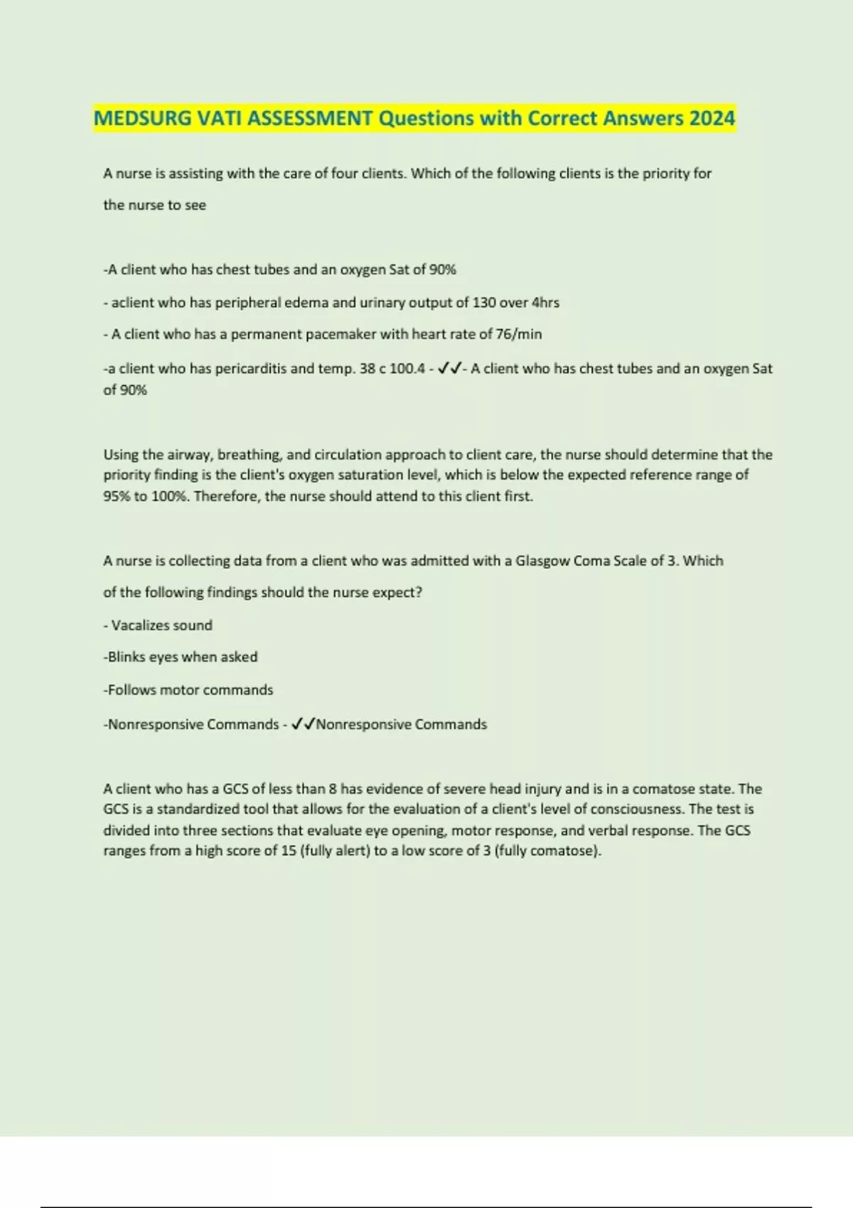 MEDSURG VATI ASSESSMENT Questions with Correct Answers 2024