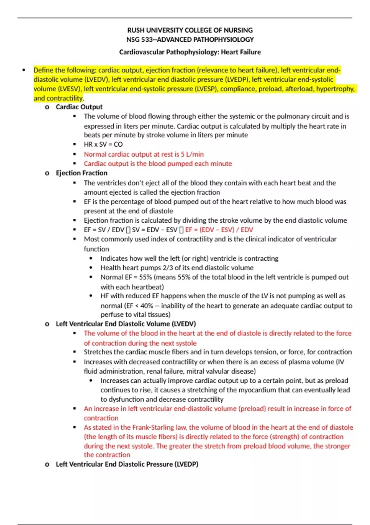 NSG 533 Module 9 Heart Failure Objectives Rush University 2023/24