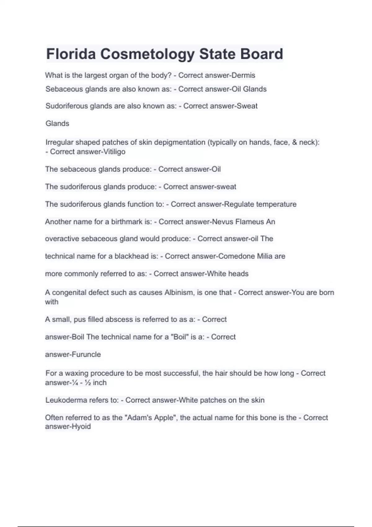Florida Cosmetology State Board Exam Questions and Answers 2024