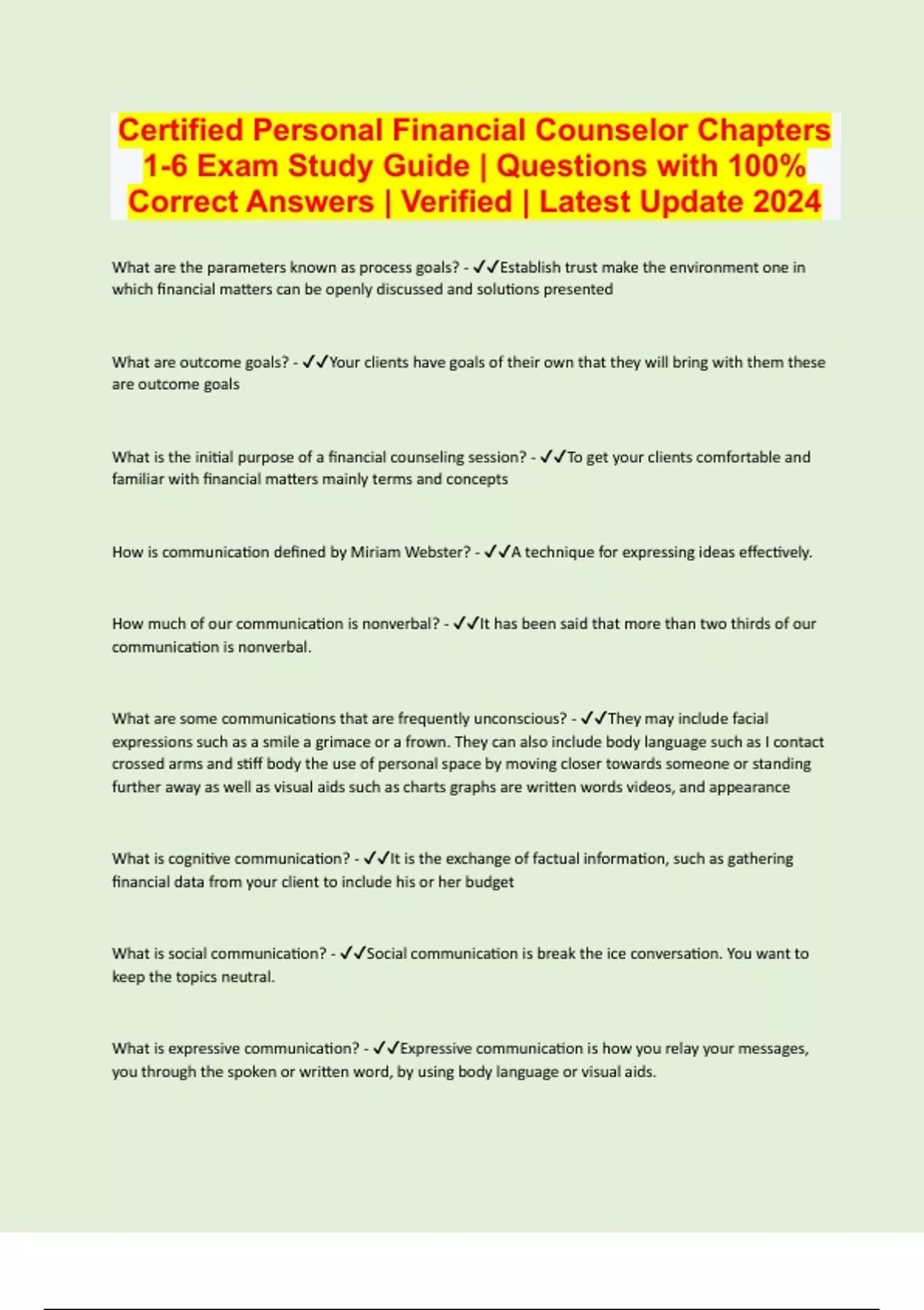 Certified Personal Financial Counselor Chapters 1-6 Exam Study Guide | Questions with 100% Correct Answers | Verified | Latest Update 2024 | 28 Pages