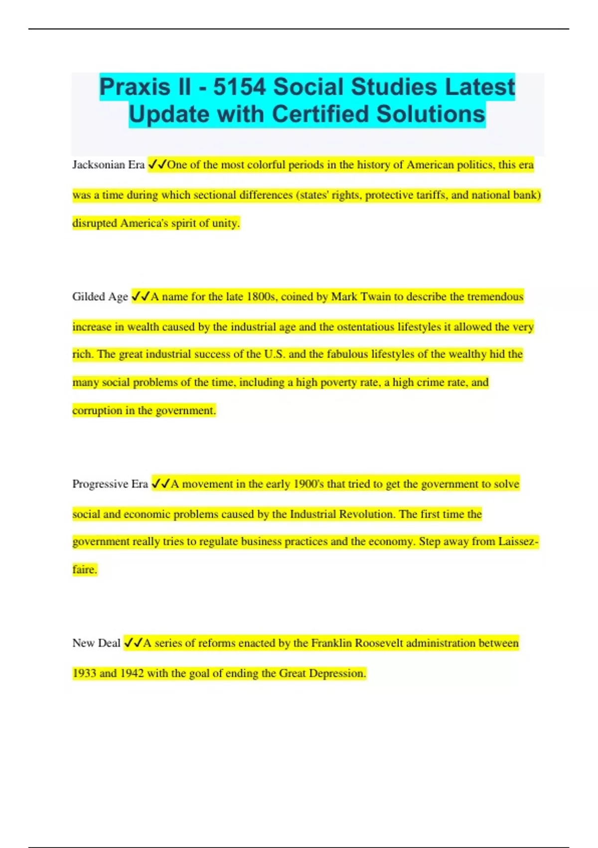 Praxis II - 5154 Social Studies Latest Update with Certified Solutions