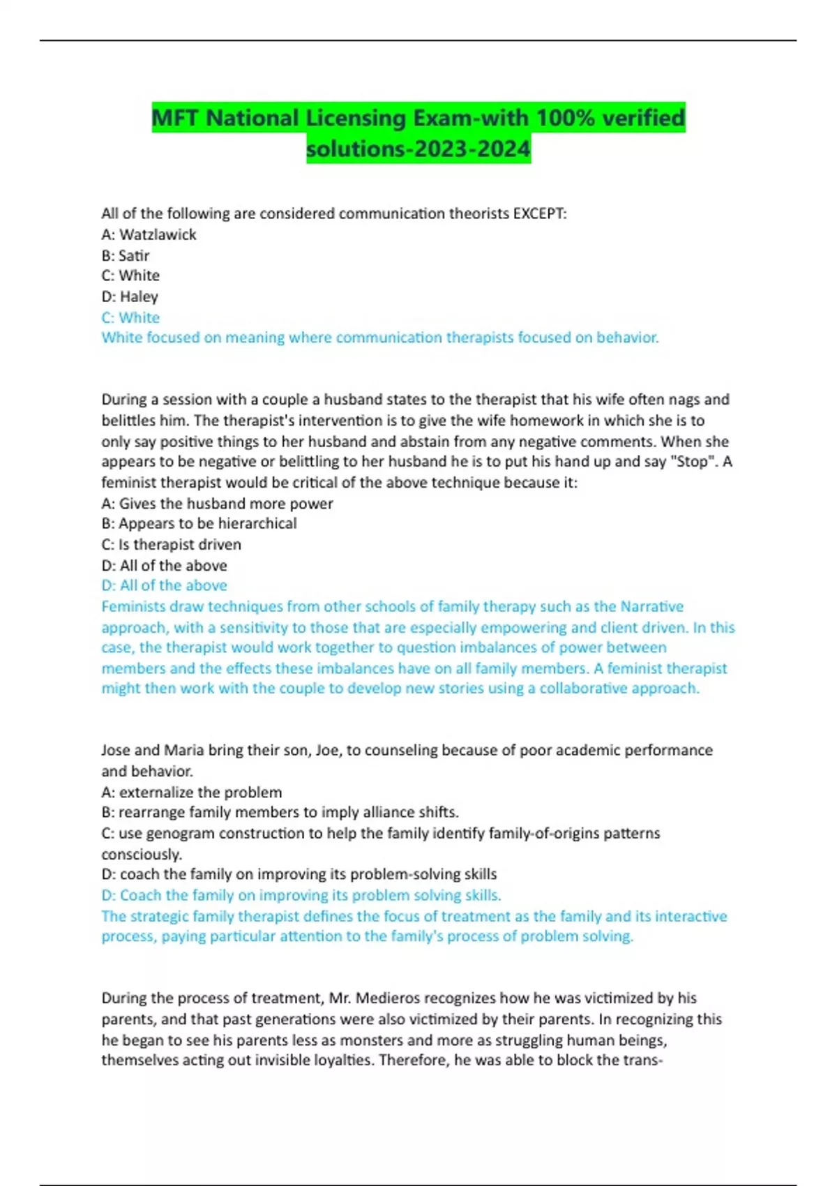 MFT National Licensing Exam-with 100% verified solutions-2023/2024