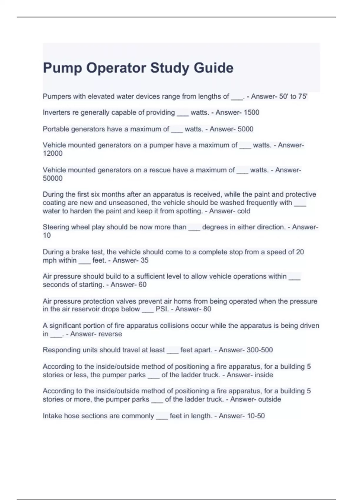 Pump Operator Study Guide latest updated