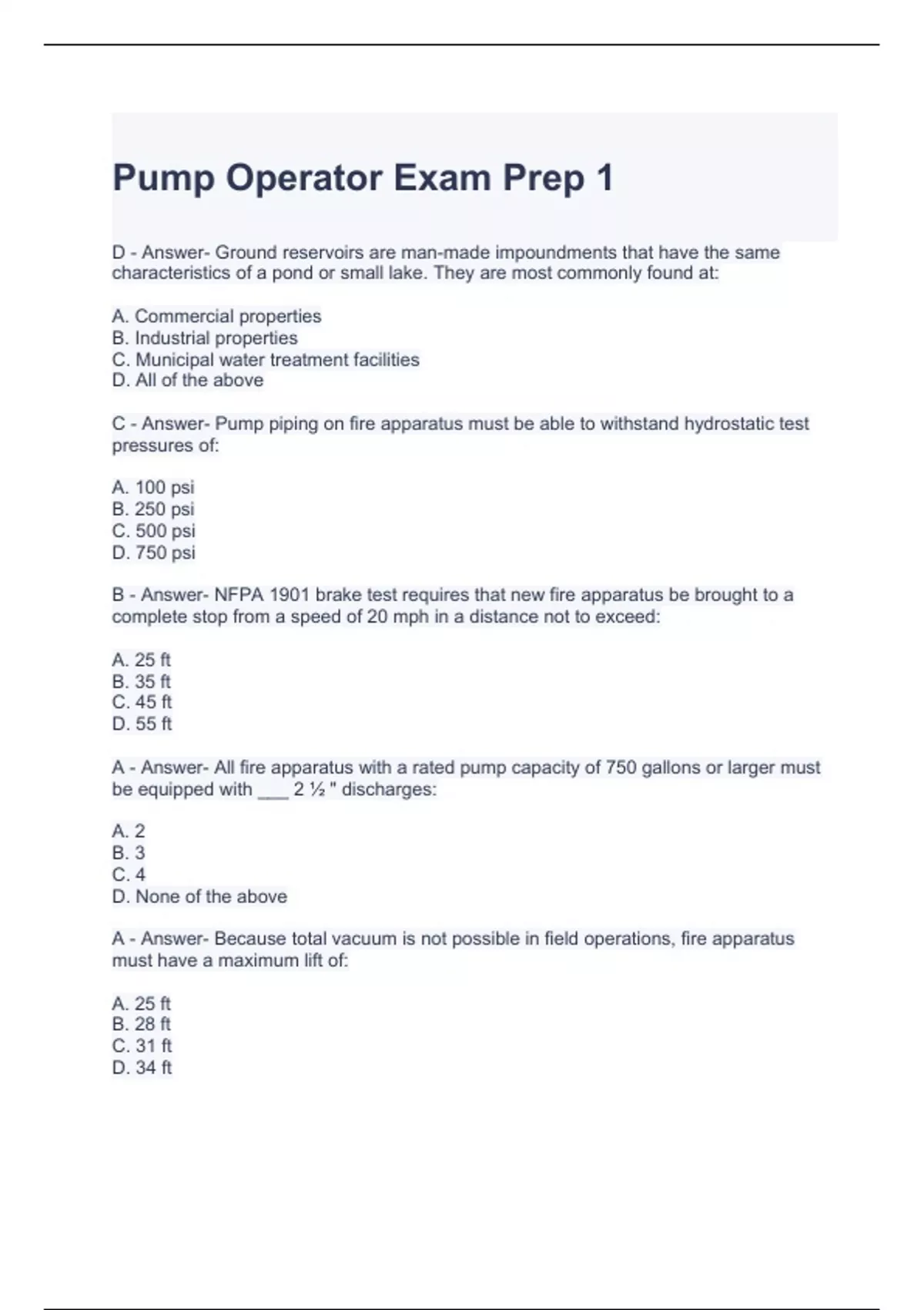 Pump Operator Exam Prep 1 Questions and Answers