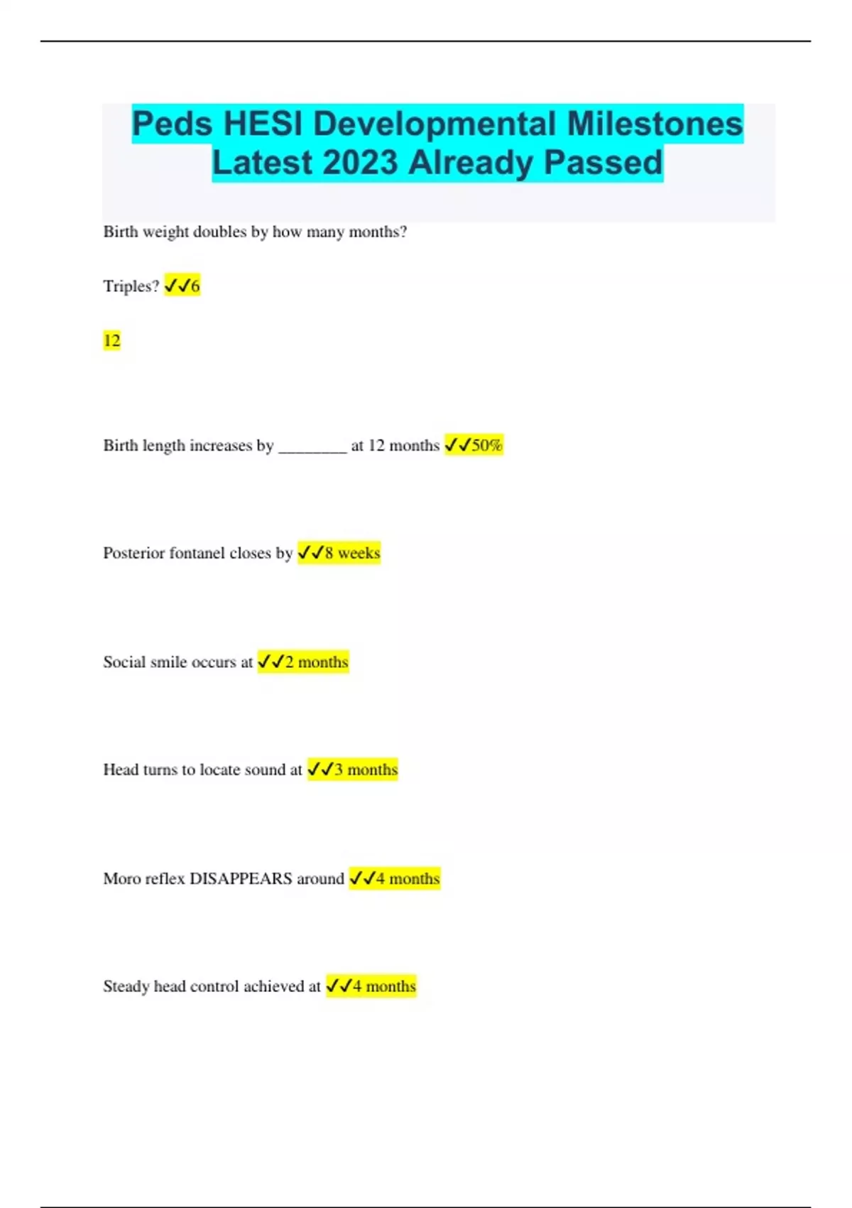 Peds HESI Developmental Milestones Latest 2023 Already Passed