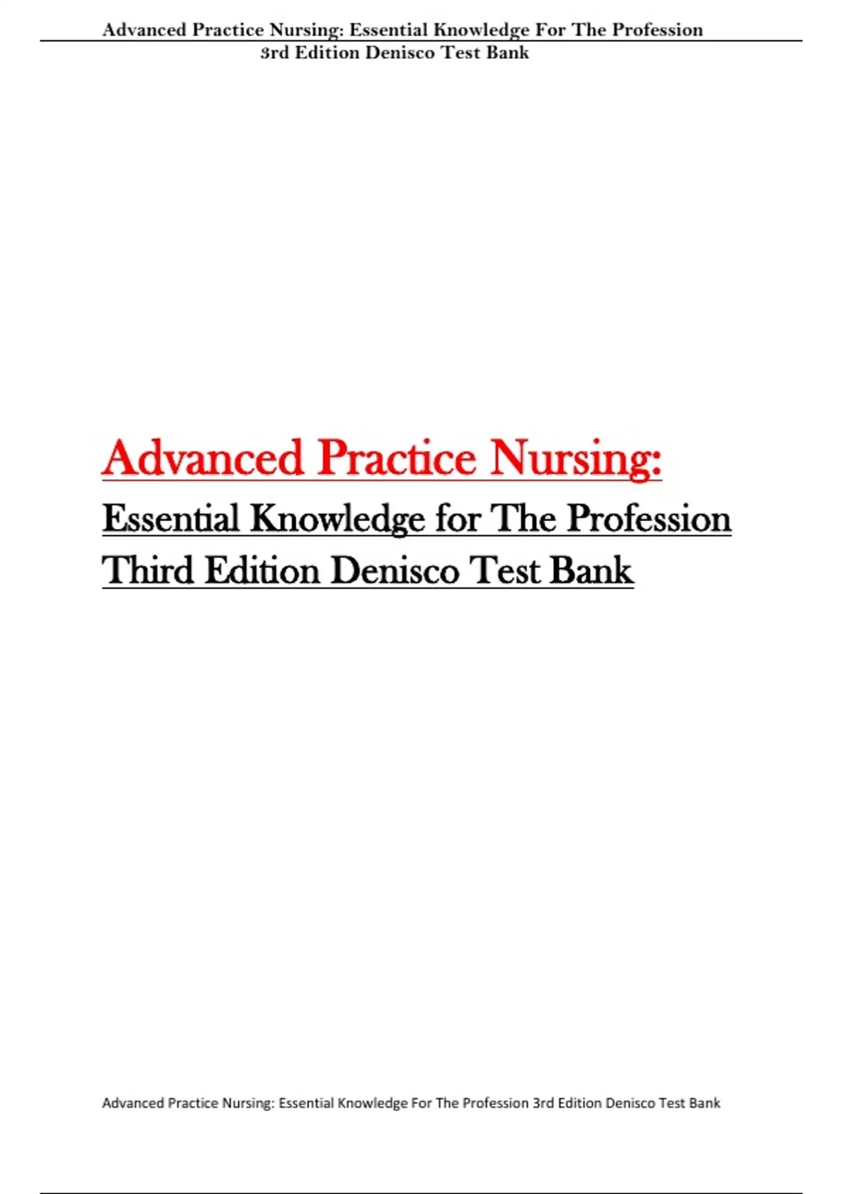 Advanced Practice Nursing: Essential Knowledge For The Profession 3rd Edition Denisco Test Bank