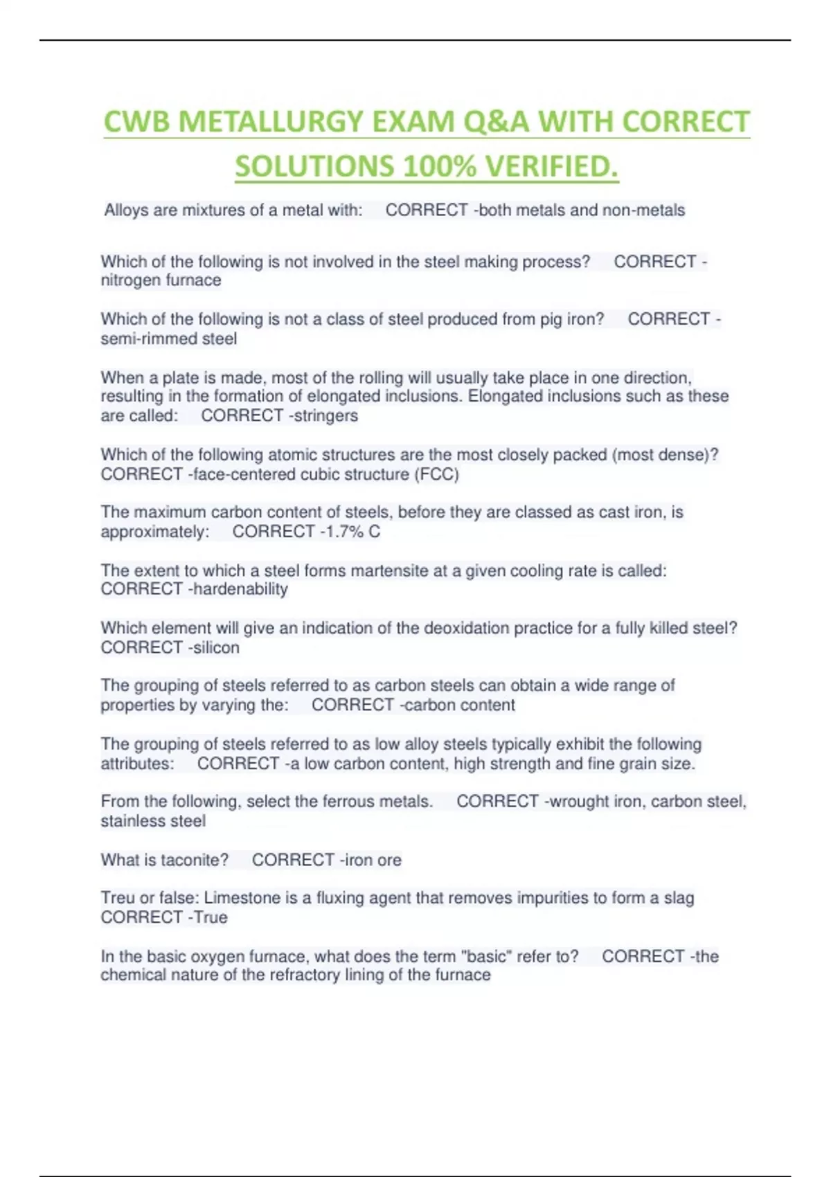 CWB METALLURGY EXAM Q&A WITH CORRECT SOLUTIONS 100% VERIFIED.CWB METALLURGY EXAM Q&A WITH CORRECT SOLUTIONS 100% VERIFIED.VCWB METALLURGY EXAM Q&A WITH CORRECT SOLUTIONS 100% VERIFIED.CWB METALLURGY EXAM Q&A WITH CORRECT SOLUTIONS 100% VERIFIED.CWB METALLURGY EXAM Q&A WITH CORRECT SOLUTIONS 100% VERIFIED.CWB METALLURGY EXAM Q&A WITH CORRECT SOLUTIONS 100% VERIFIED.CWB METALLURGY EXAM Q&A WITH CORRECT SOLUTIONS 100% VERIFIED.CWB METALLURGY EXAM Q&A WITH CORRECT SOLUTIONS 100% VERIFIED.CWB METALLURGY EXAM Q&A WITH CORRECT SOLUTIONS 100% VERIFIED.