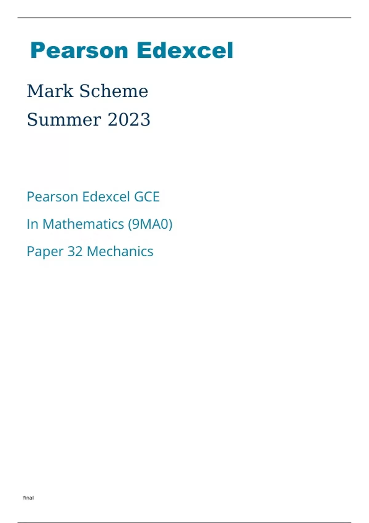 Edexcel Mathematics 9MA0-32 Mark Scheme June2023.