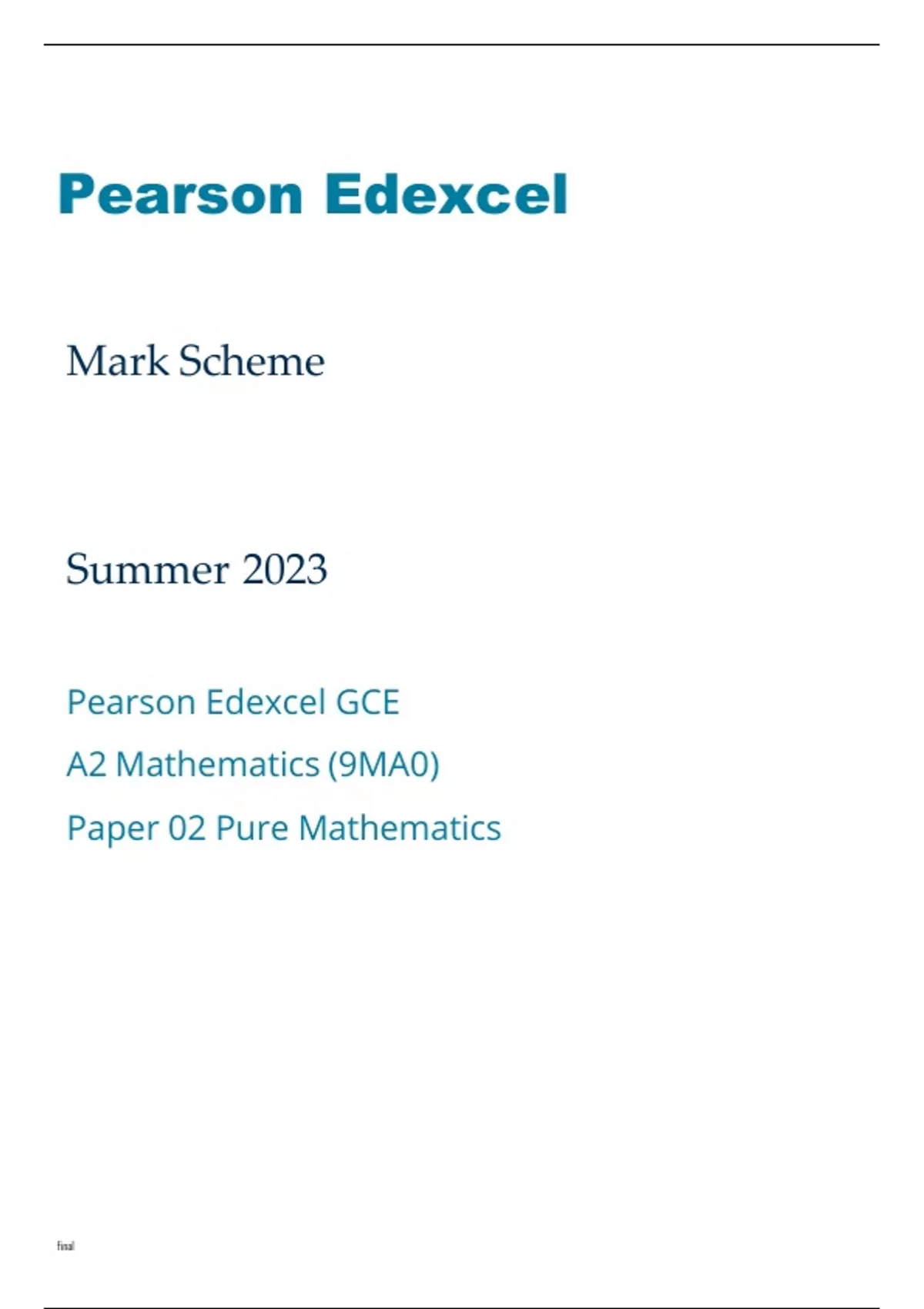Edexcel Mathematics 9MA0-02 Mark Scheme June2023.