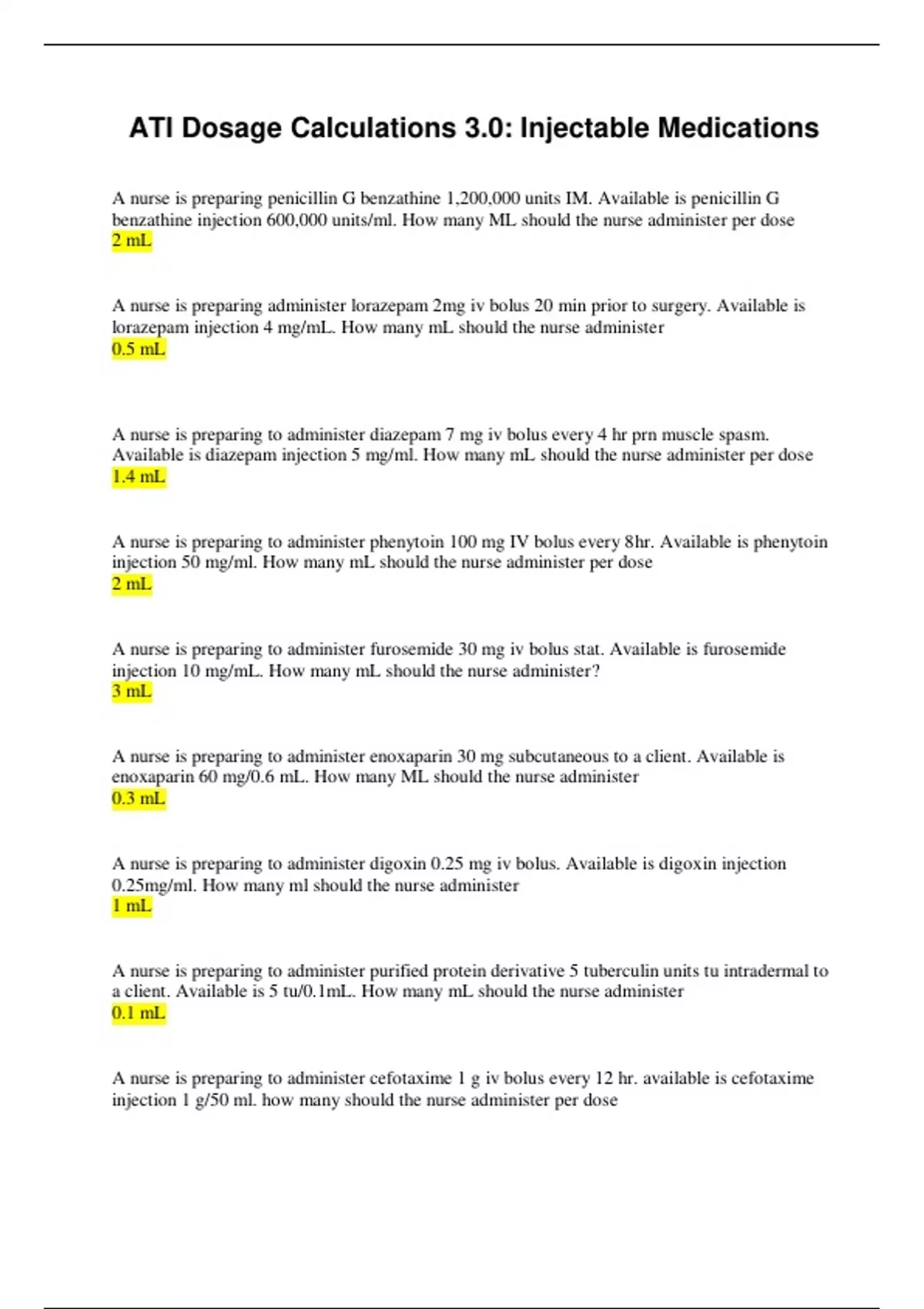 - ATI Dosage Calculations 3.0: Injectable Medication