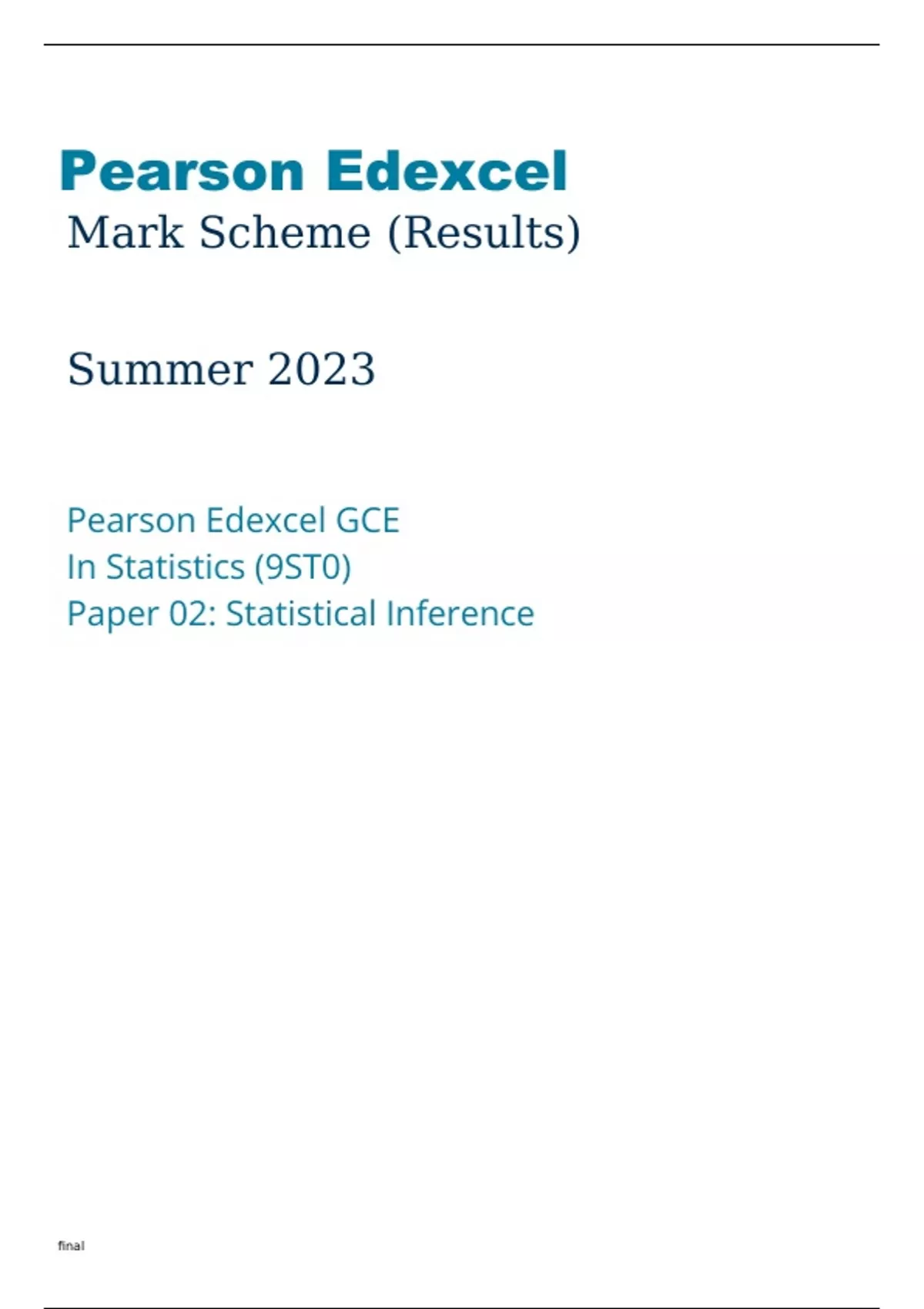 Edexcel Statistics 9ST0-02 Mark Scheme June2023.