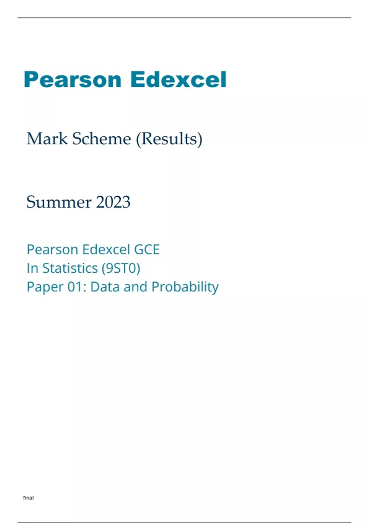 Edexcel Statistics 9ST0-01 Mark Scheme June2023.