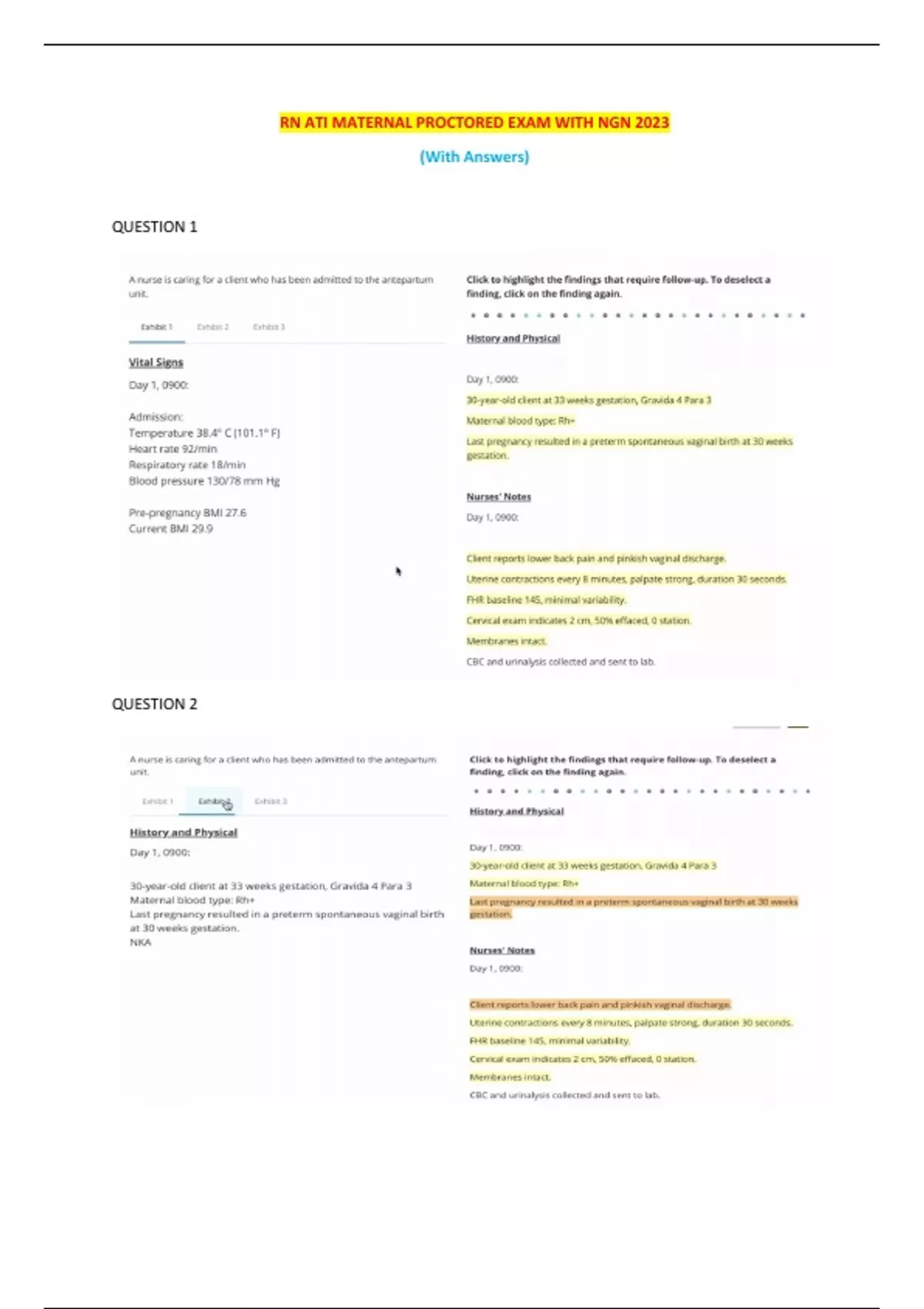 RN ATI MATERNAL PROCTORED EXAM WITH NGN 2023