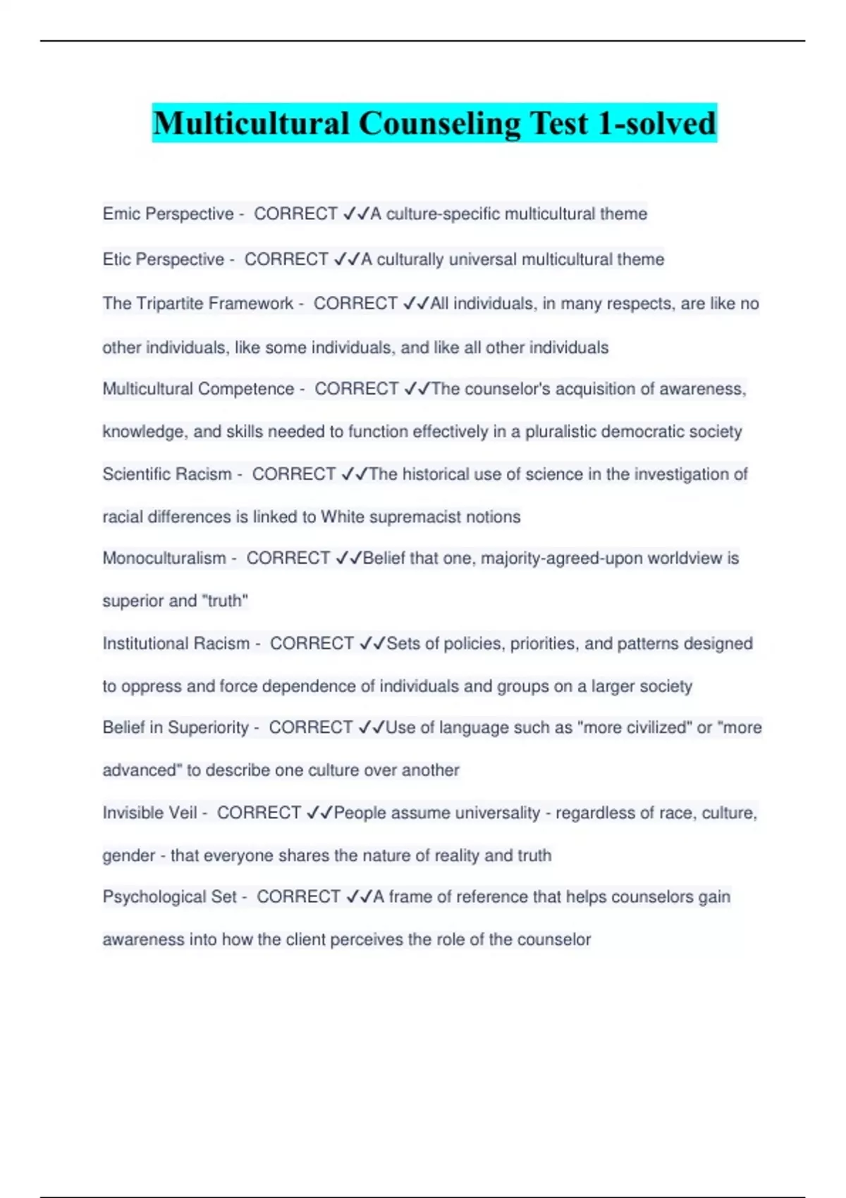 Multicultural Counseling Test 1-solved
