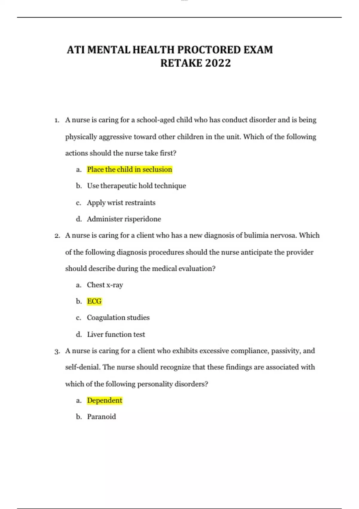 2022 ati mental health proctored exam