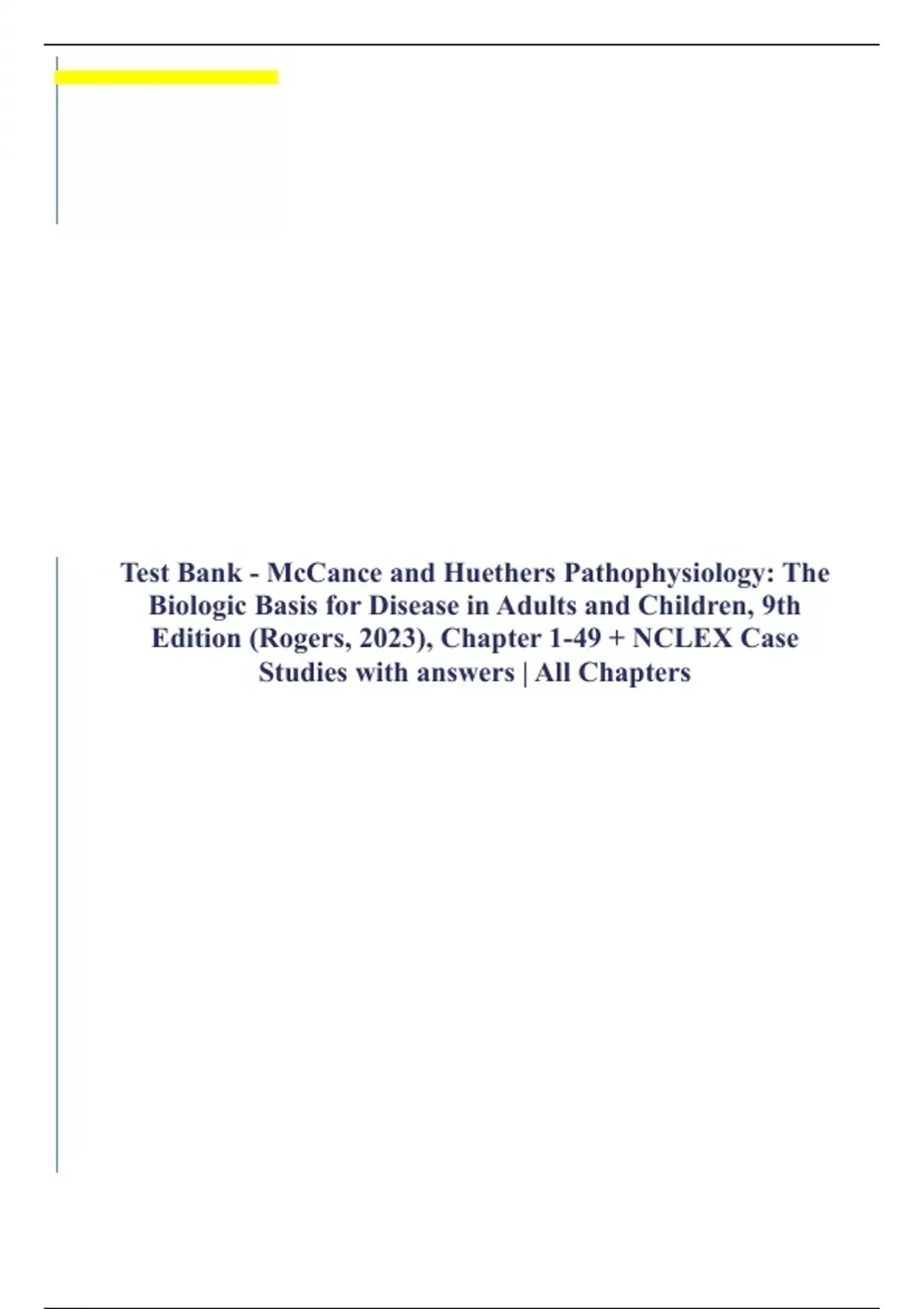 Test Bank - McCance and Huethers Pathophysiology: The Biologic Basis for Disease in Adults and Children, 9th Edition (Rogers, 2023), Chapter 1-49 + NCLEX Case Studies with answers | All Chapters