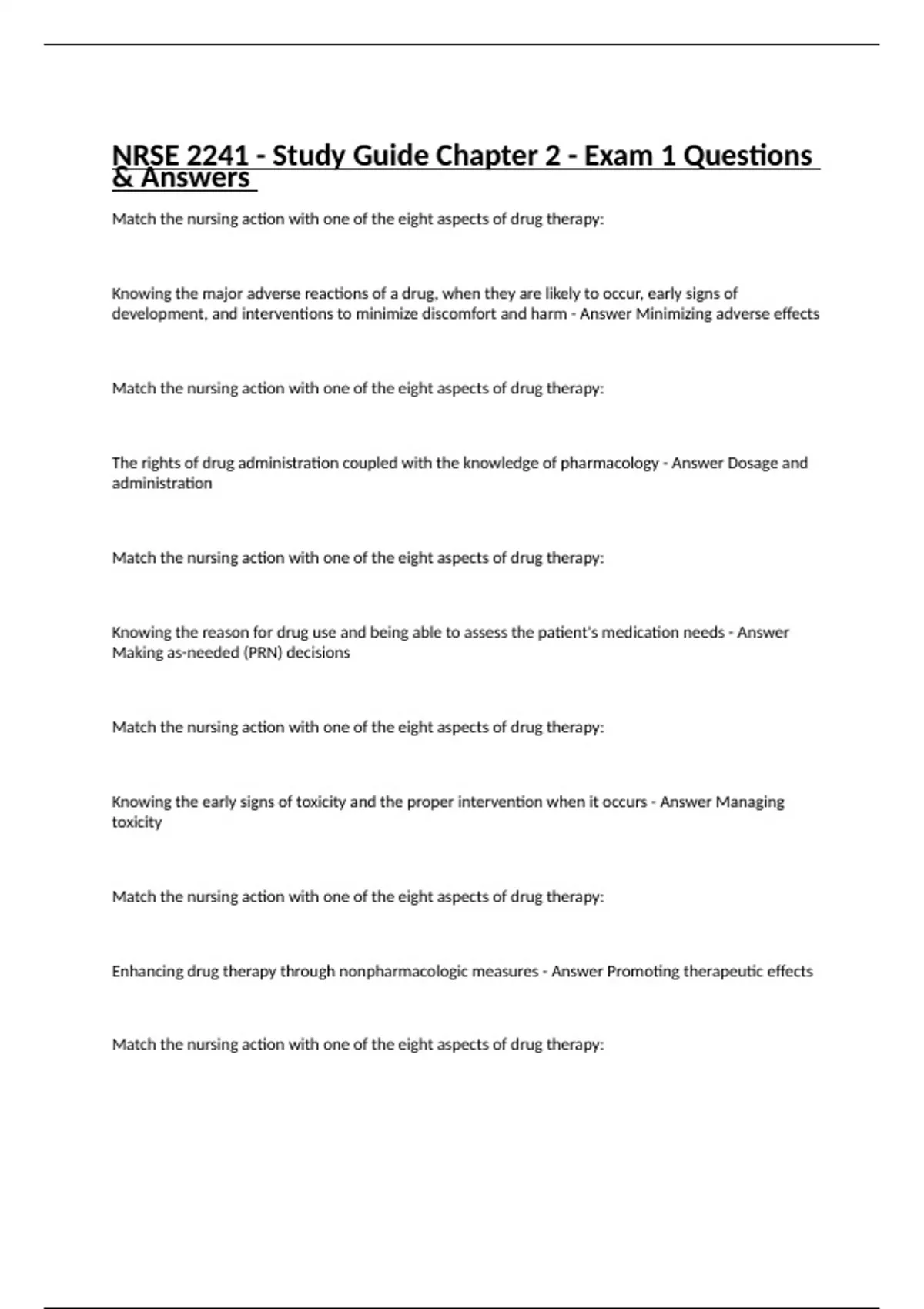 NRSE 2241 - Study Guide Chapter 2 - Exam 1 Questions & Answers