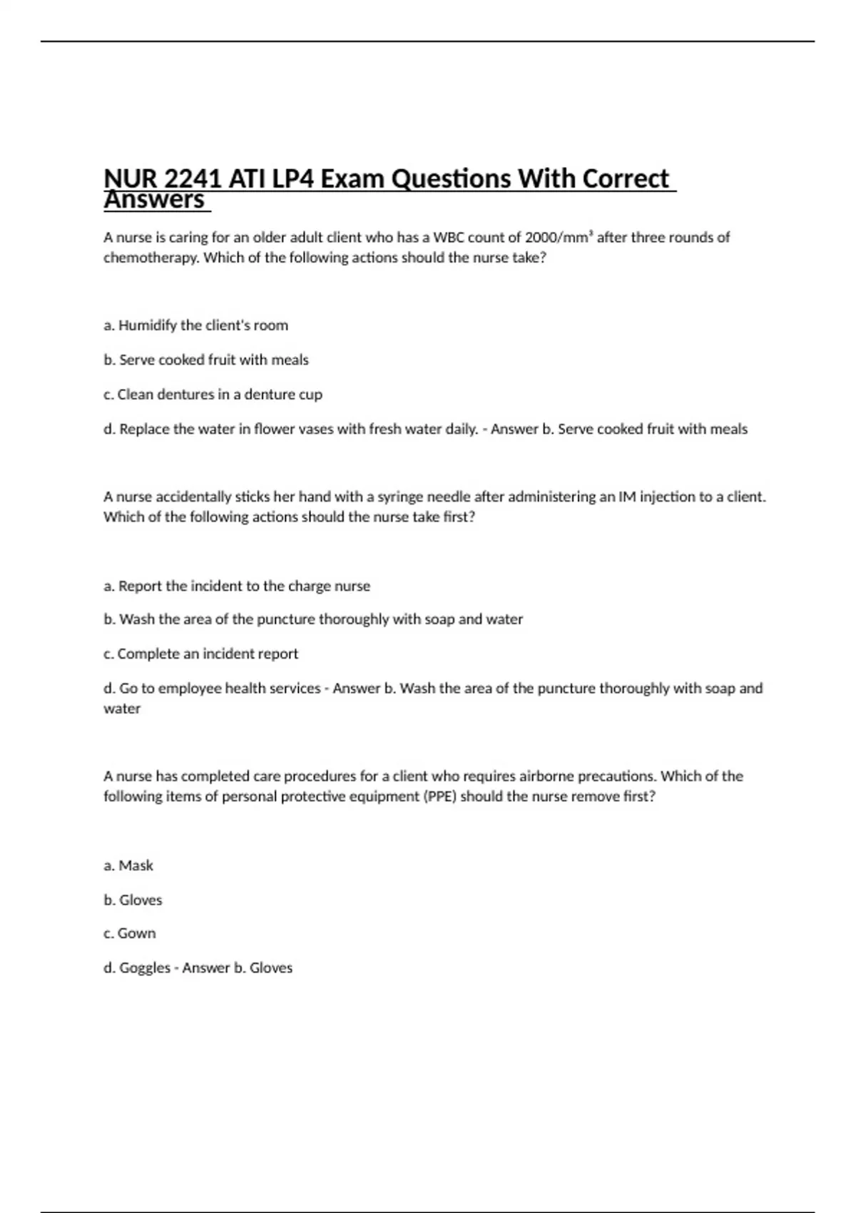 NUR 2241 ATI LP4 Exam Questions With Correct Answers