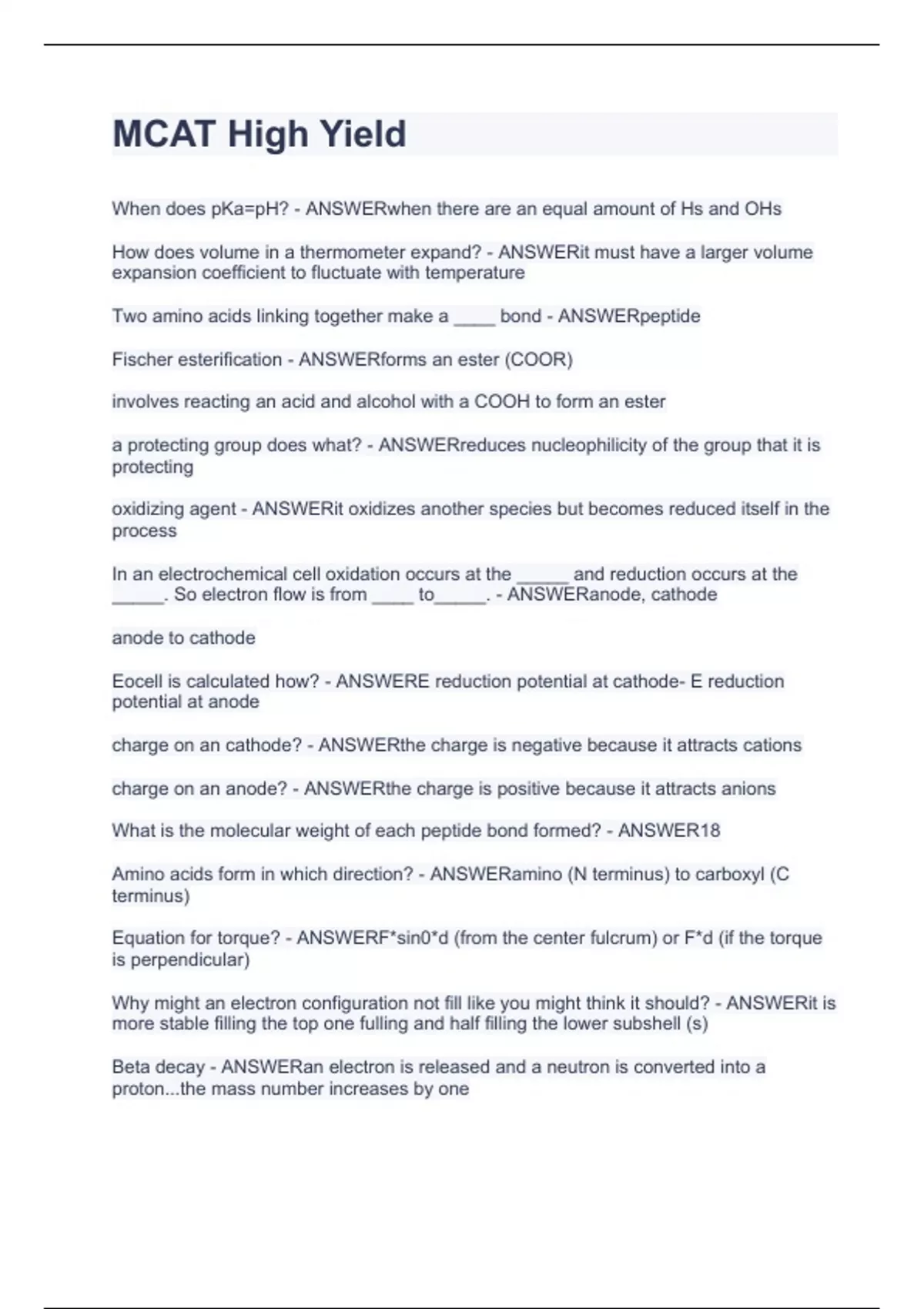 Exam of 7 pages for the course MCAT at MCAT (MCAT High Yield.)