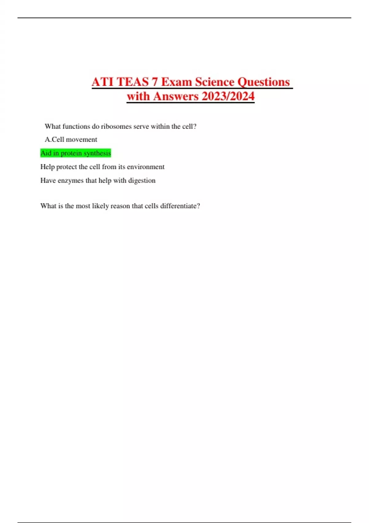 ATI TEAS 7 Exam Science Questions with Answers 2023/2024 100% CORRECT