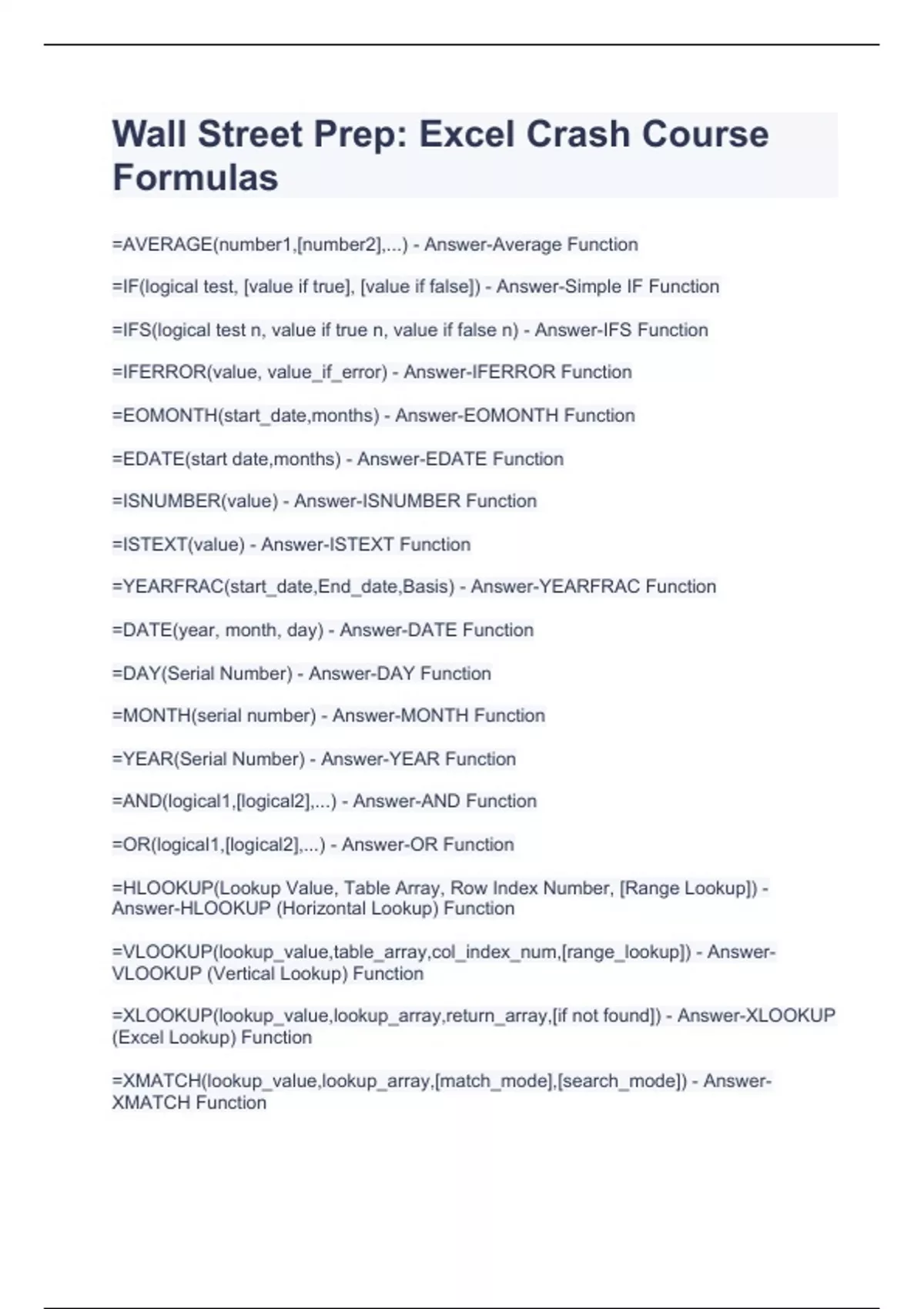 Wall Street Prep: Excel Crash Course Formulas exam with 100% verified correct answers