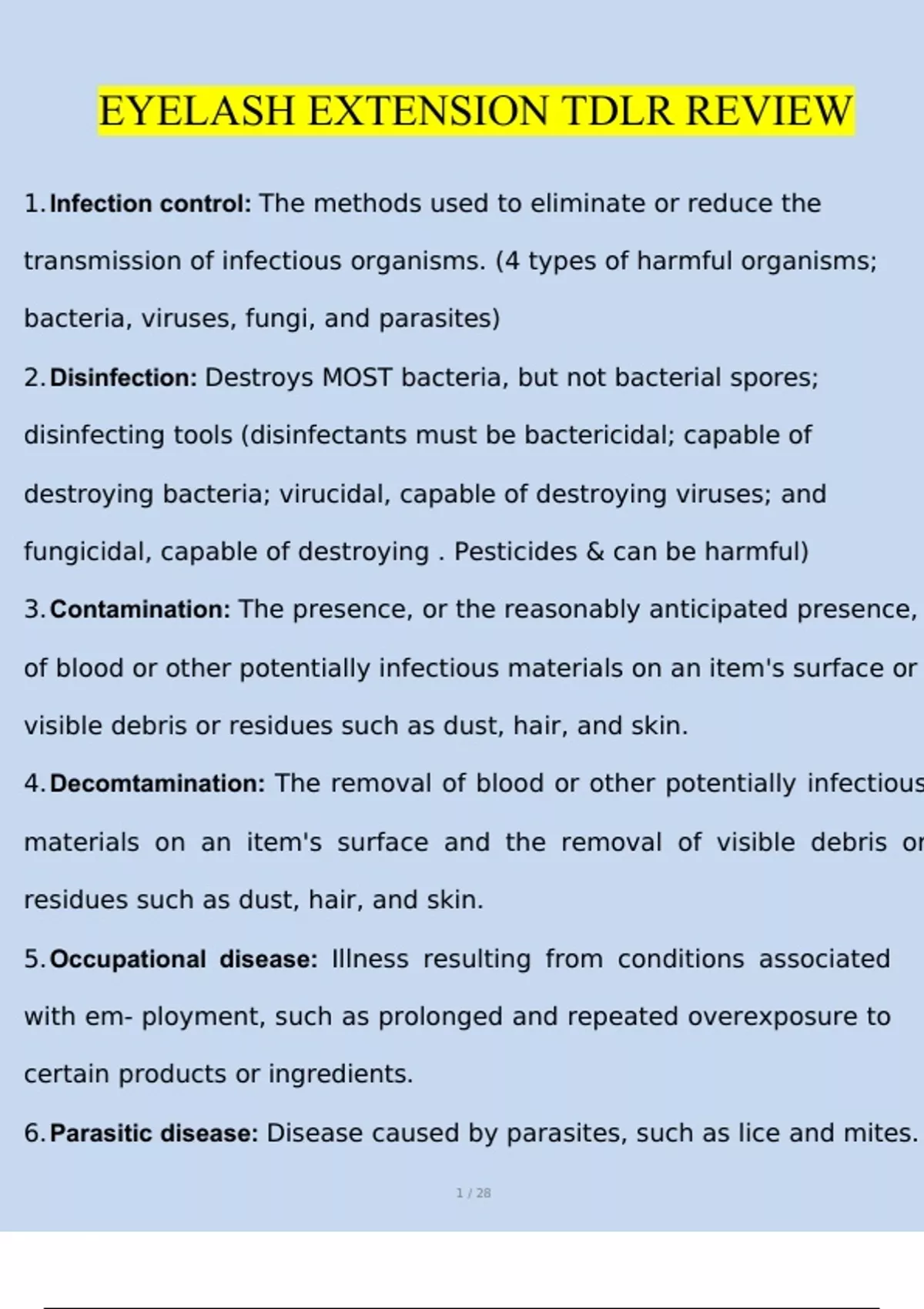 TDLR EYELASH EXTENSION REVIEW Newest Questions and Answers (2023 / 2024) (Verified Answers)