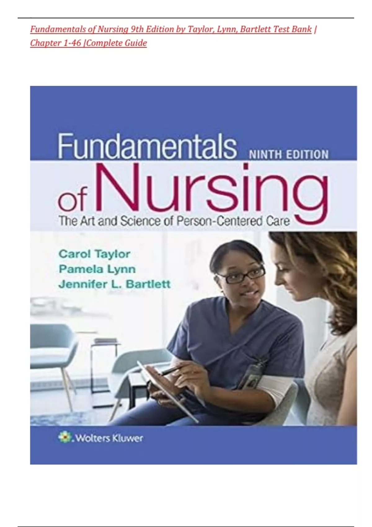 Test Bank for Fundamentals of Nursing The Art and Science of Person-Centered Care 9th Edition By Carol Taylor; Pamela Lynn; Jennifer Bartlett Chapter 1-46 Complete Guide A+
