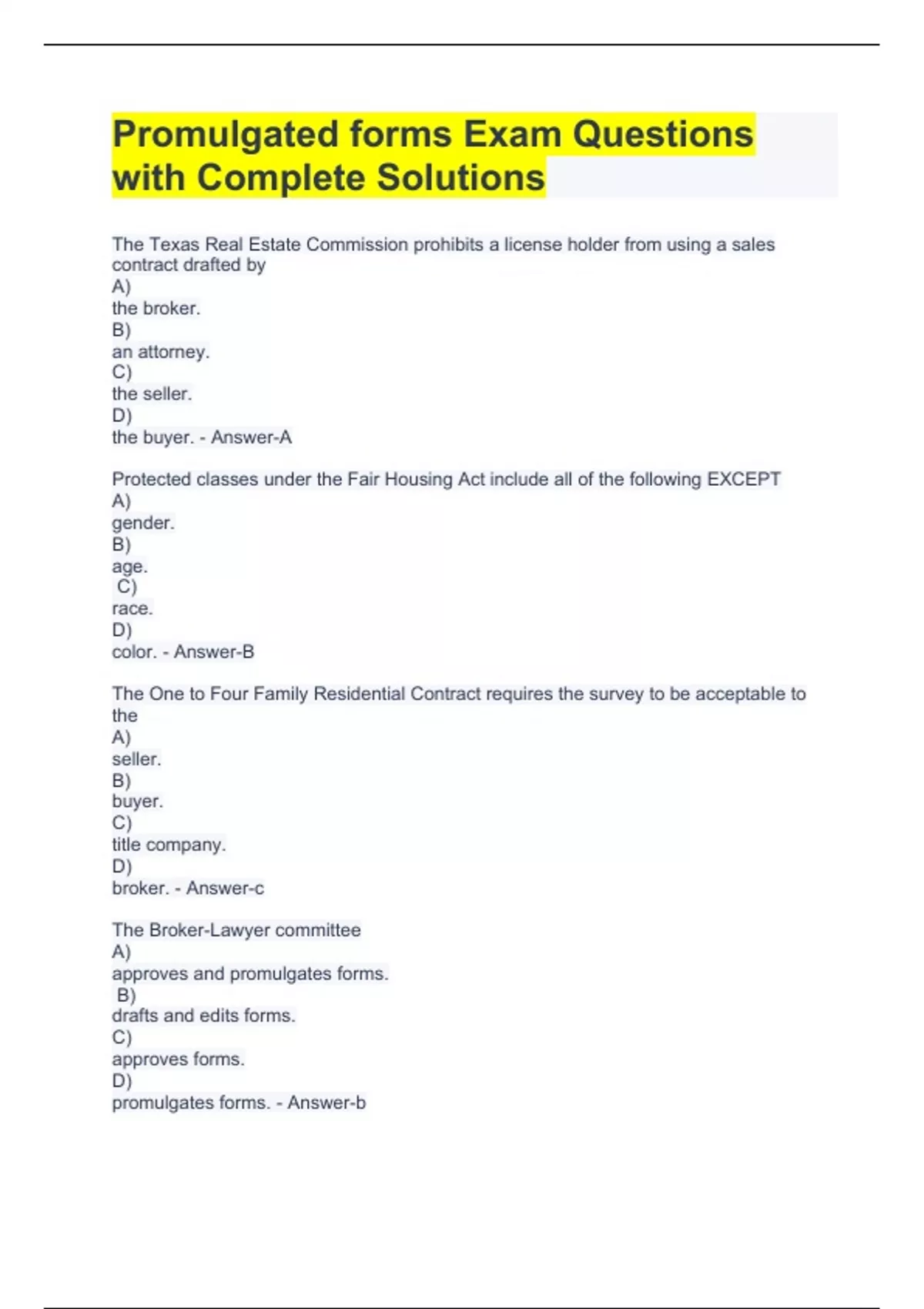 Texas Promulgated Contract Forms Exam Bundle (Graded A )