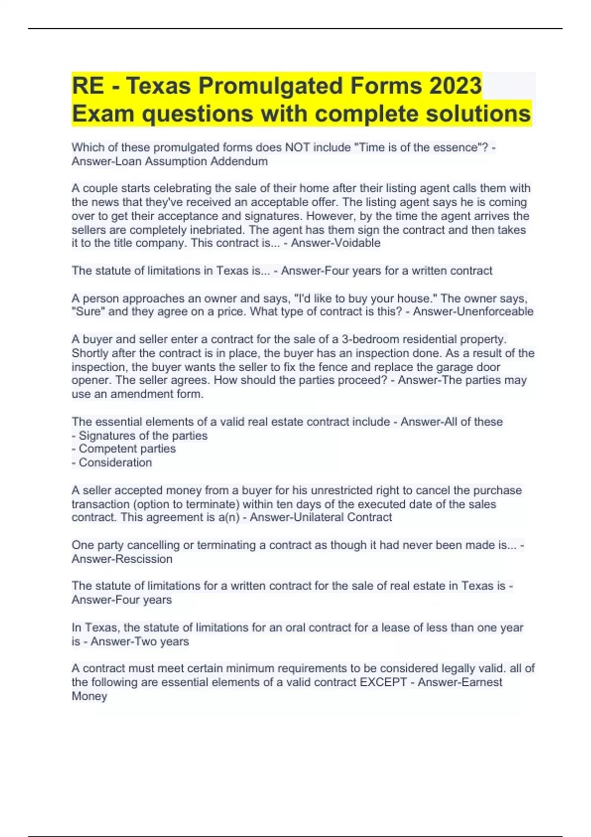 Texas Promulgated Contract Forms Exam Bundle (Graded A )