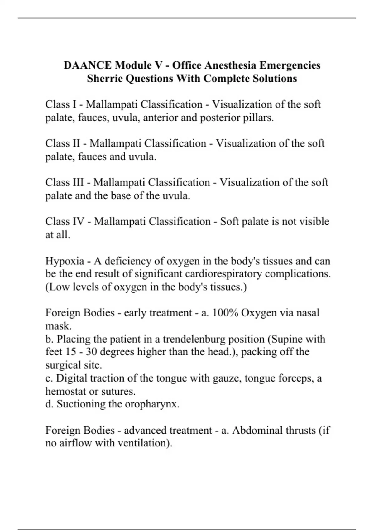 DAANCE Module V - Office Anesthesia Emergencies Sherrie Questions With Complete Solutions