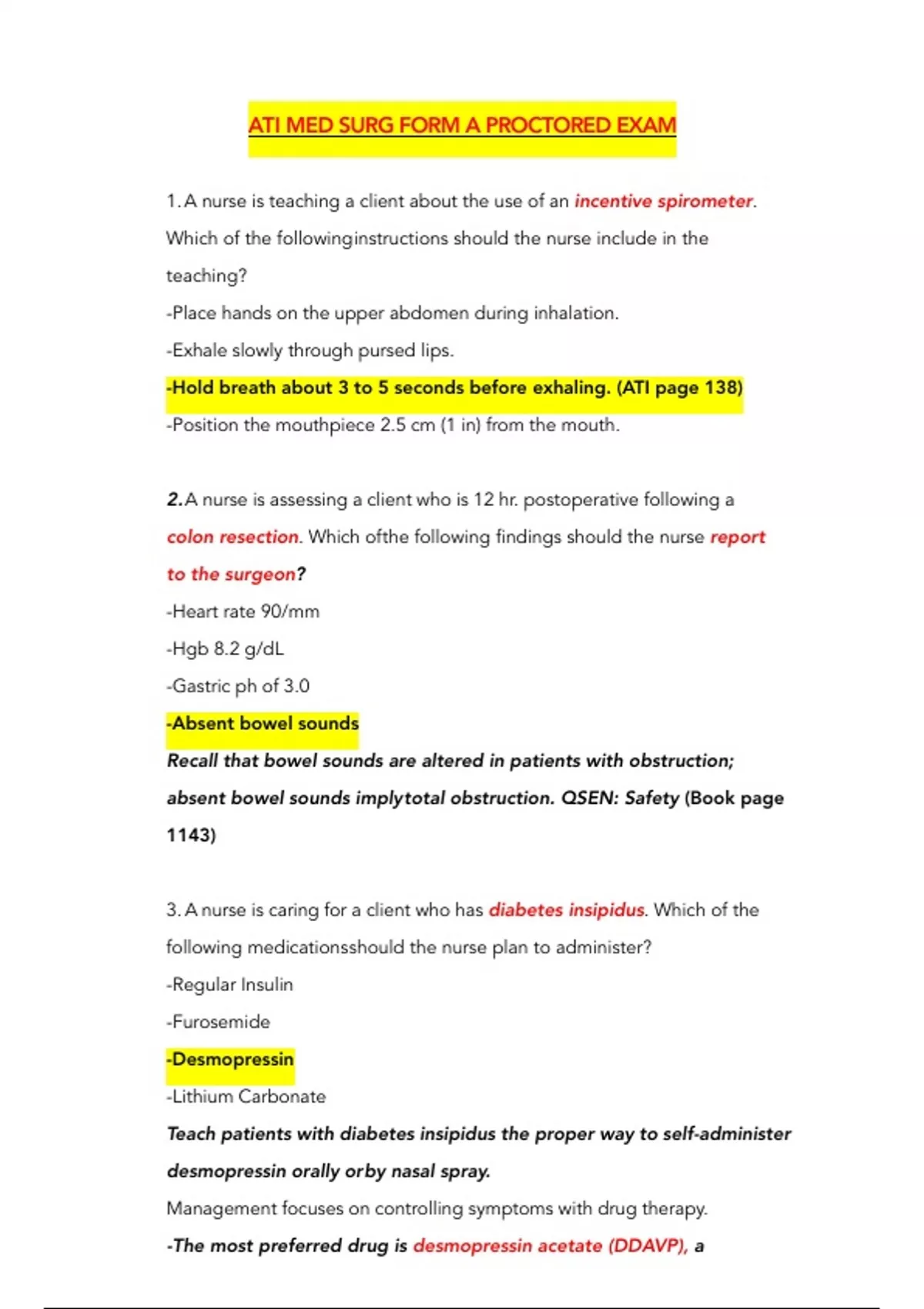 ATI MED SURG FORM A PROCTORED EXAM