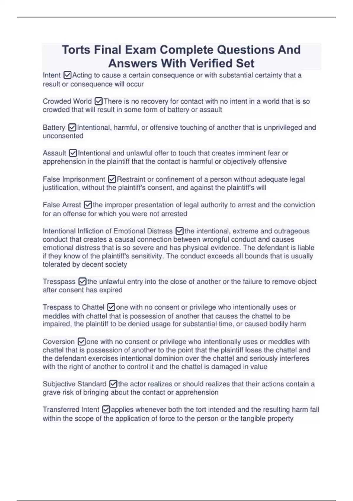 Torts Final Exam Complete Questions And Answers With Verified Set Torts Final Exam Complete Questions And Answers With Verified Set