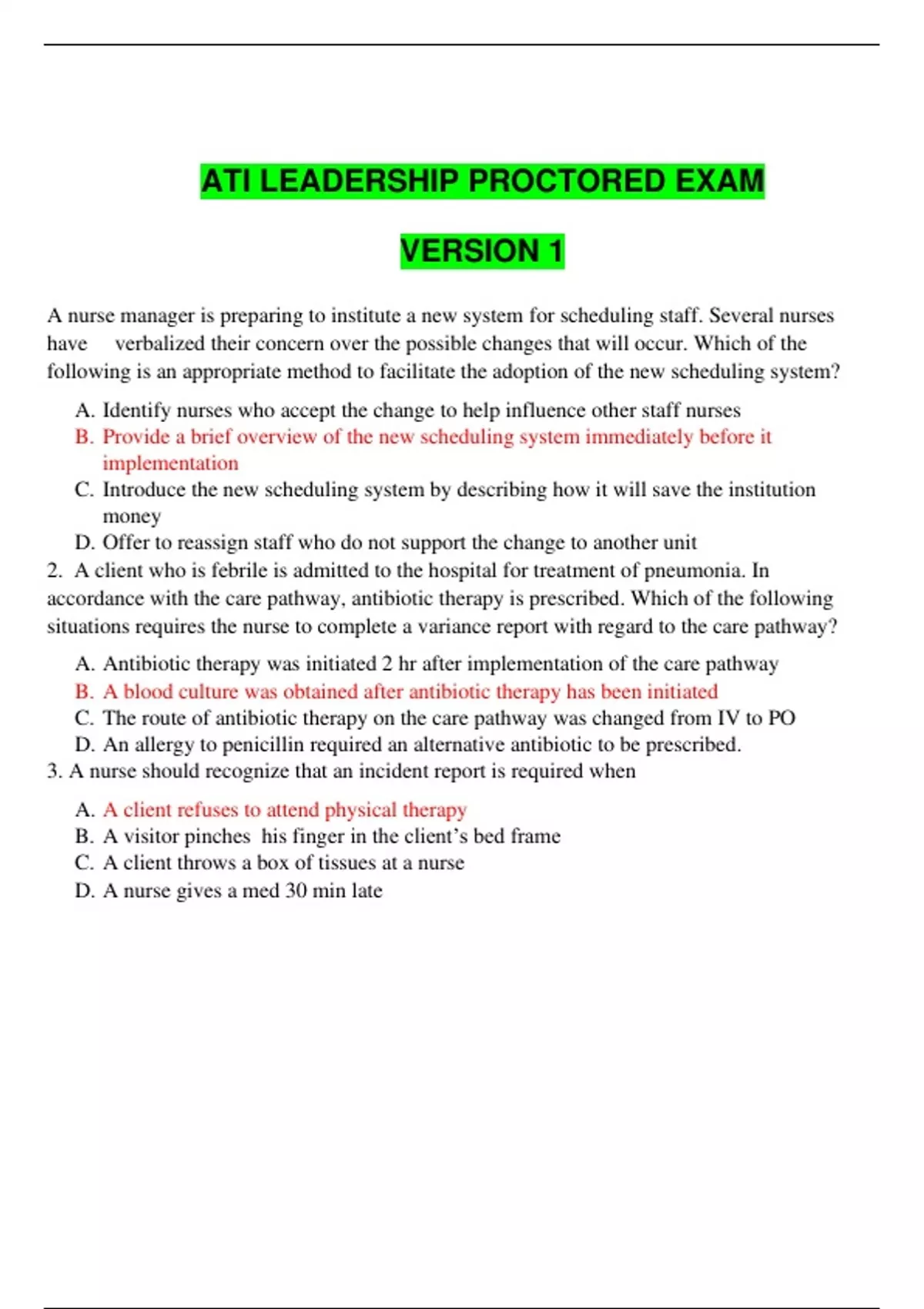 ATI LEADERSHIP PROCTORED EXAM 10 VERSIONS