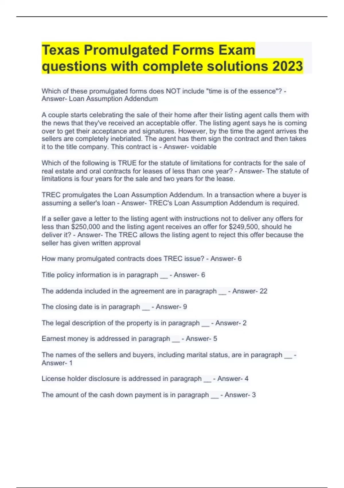 Texas Promulgated Forms Exam questions with complete solutions 2023