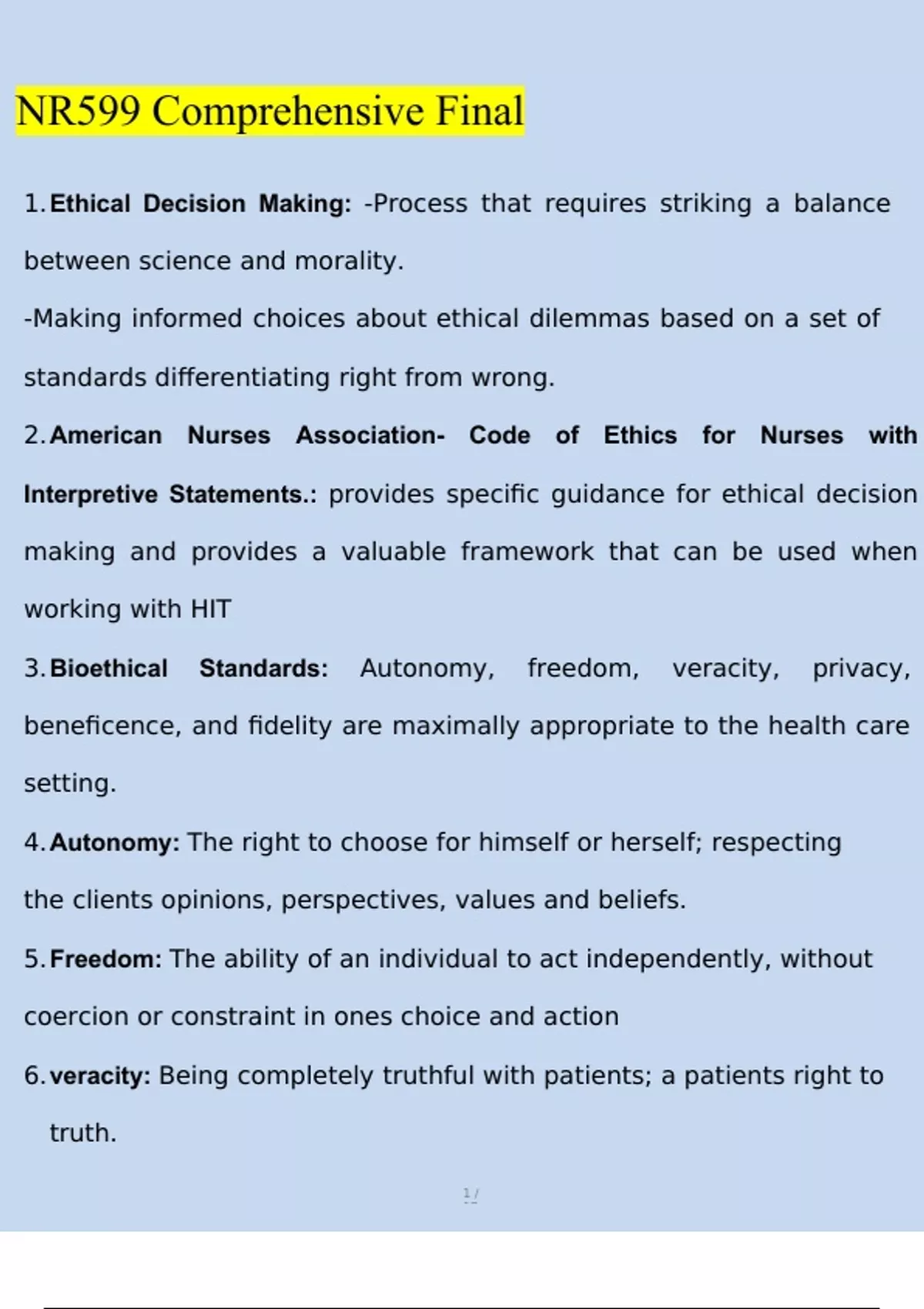 NR599 Comprehensive Final Exam Newest Questions and Answers (2024 / 2025) (Verified Answers)